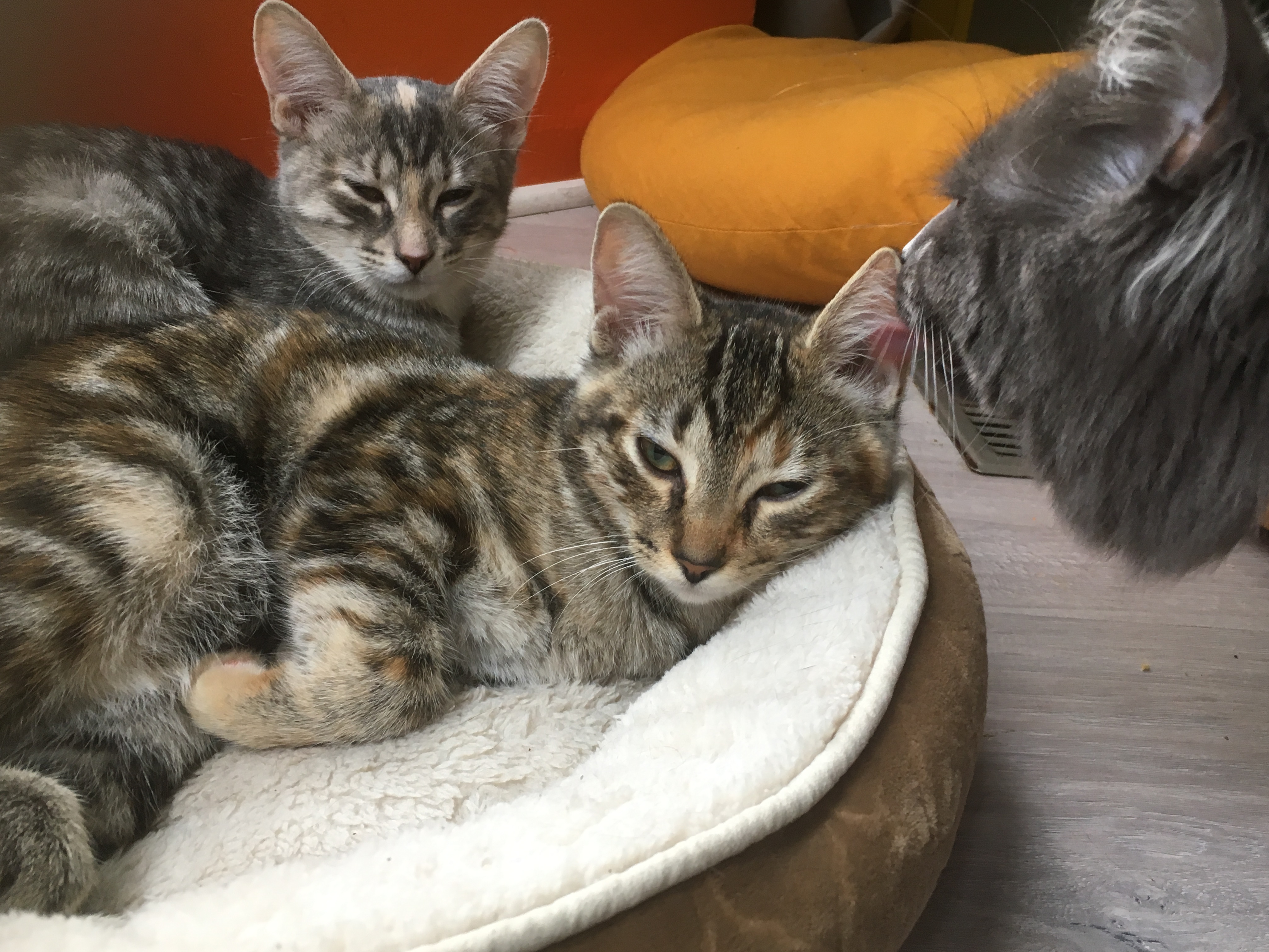These two were spayed a couple days ago so they’re still healing. Once they’re ready they will probably head over to the cat condo at the pet store where they can be more easily viewed by potential adopters.