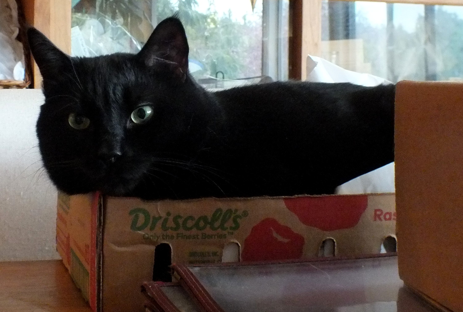 He brought a whole box of items upstairs to the dining area where there's lots of light. It was obvious that he needed some help, so I got in the box!