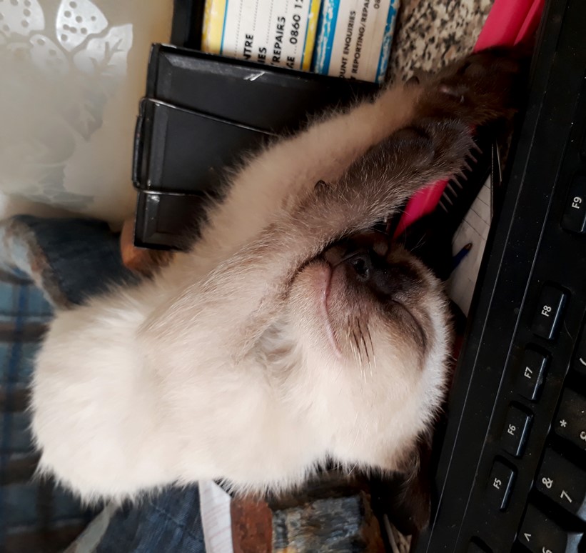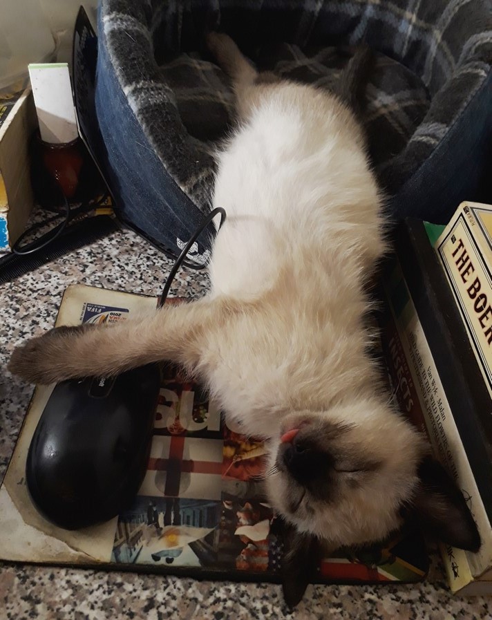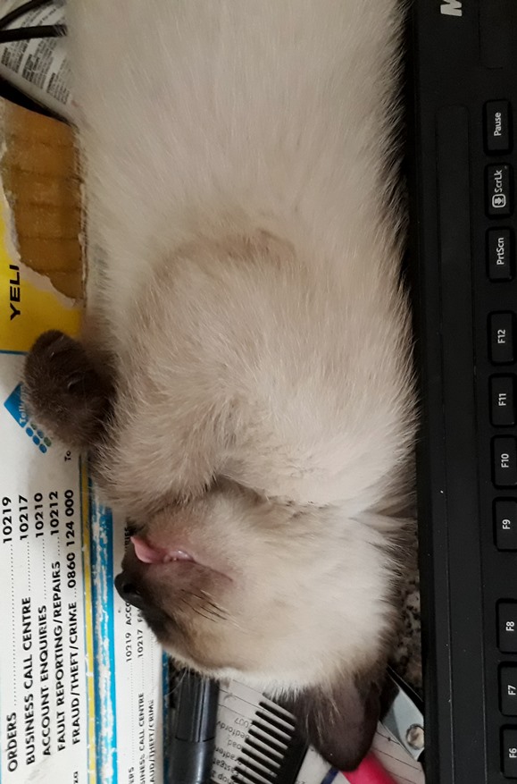 Then of course here she is; making space for herself on my desk when there really wasn't any room for her. She would use her bum to push everything out of the way. Then she would get angry at me if i start typing or use the mouse.