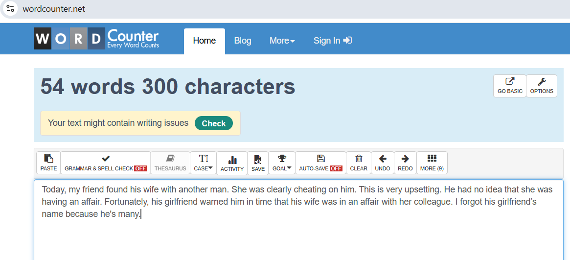 Today, my friend found his wife with another man. She was clearly cheating on him. This is very upsetting. He had no idea that she was having an affair. Fortunately, his girlfriend warned him in time that his wife was in an affair with her colleague. I forgot his girlfriend’s name because he's many.
