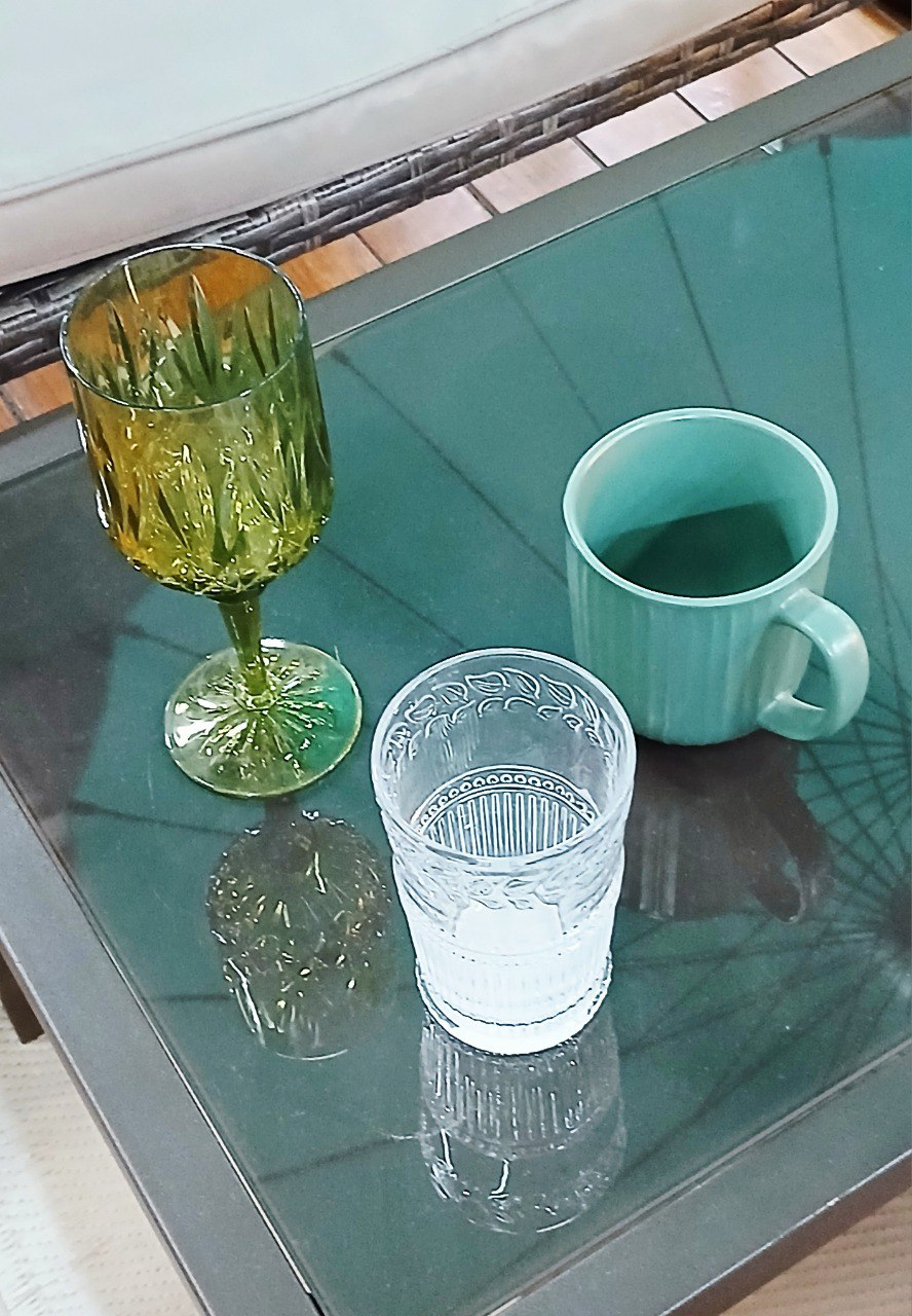And I found this amber-colored cup, it complements the other colors very well, we can also see its shadows