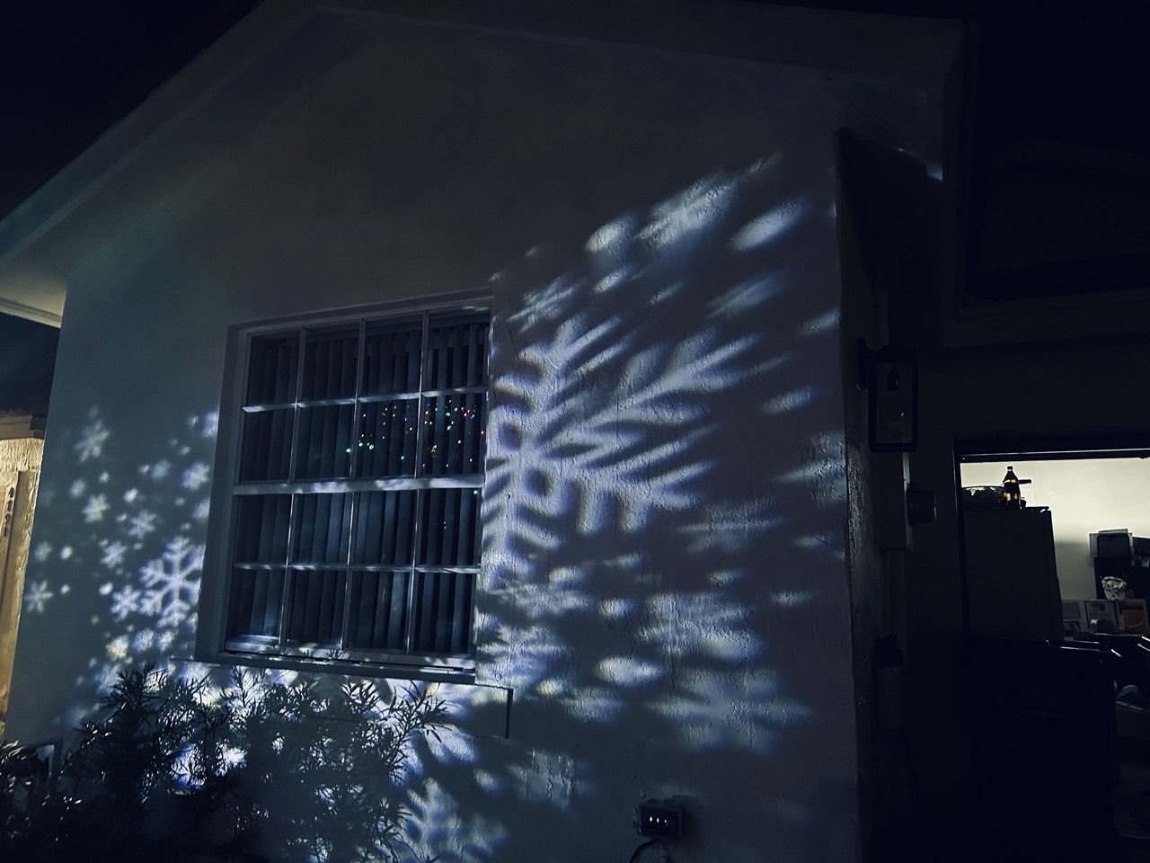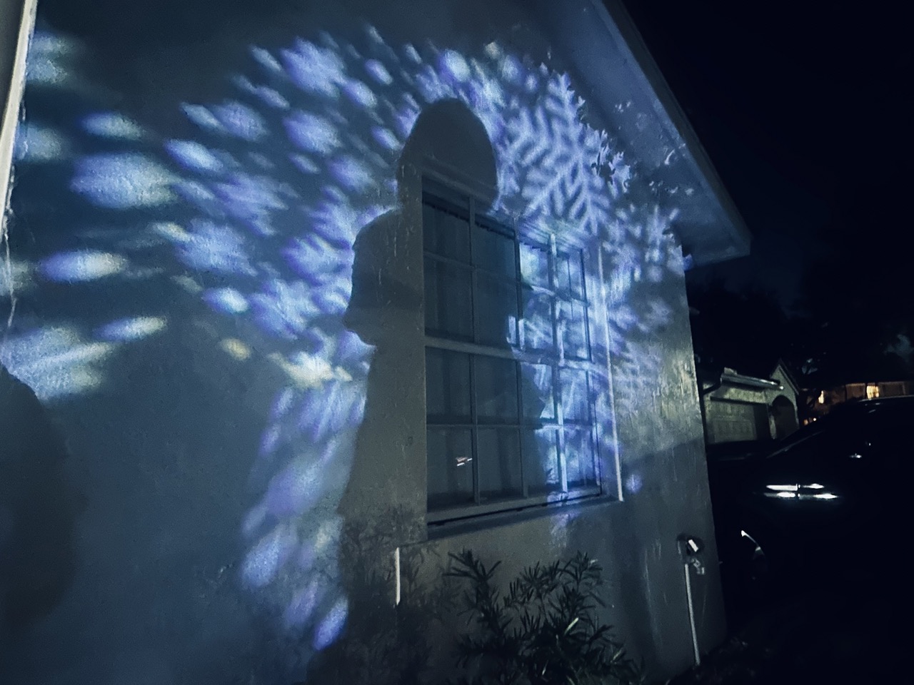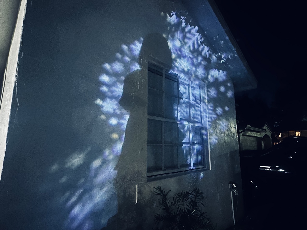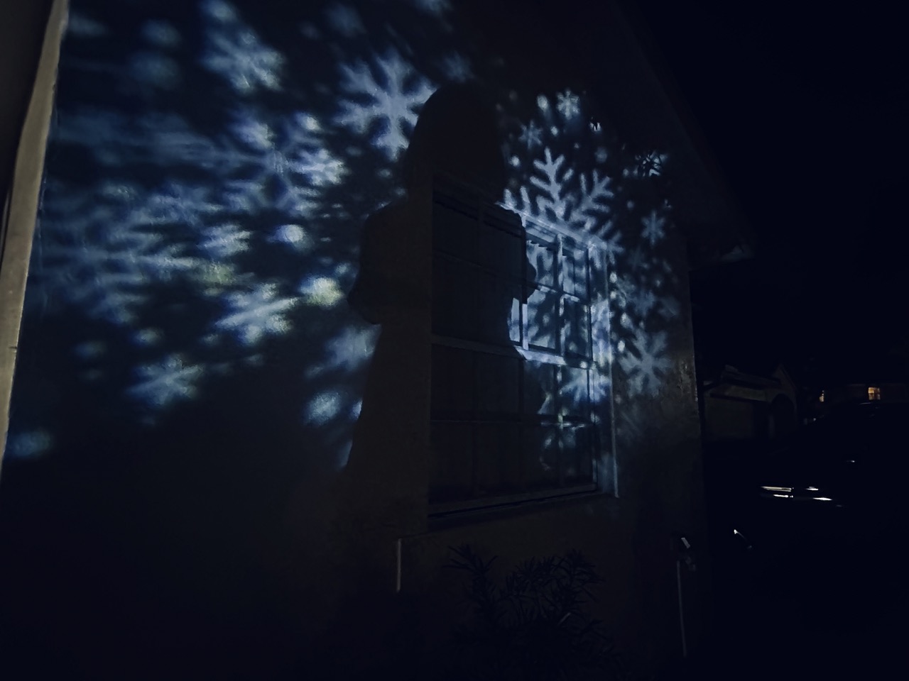 I felt like a little girl when I discovered this Christmas spotlight that created shadows on the wall of my son's house.