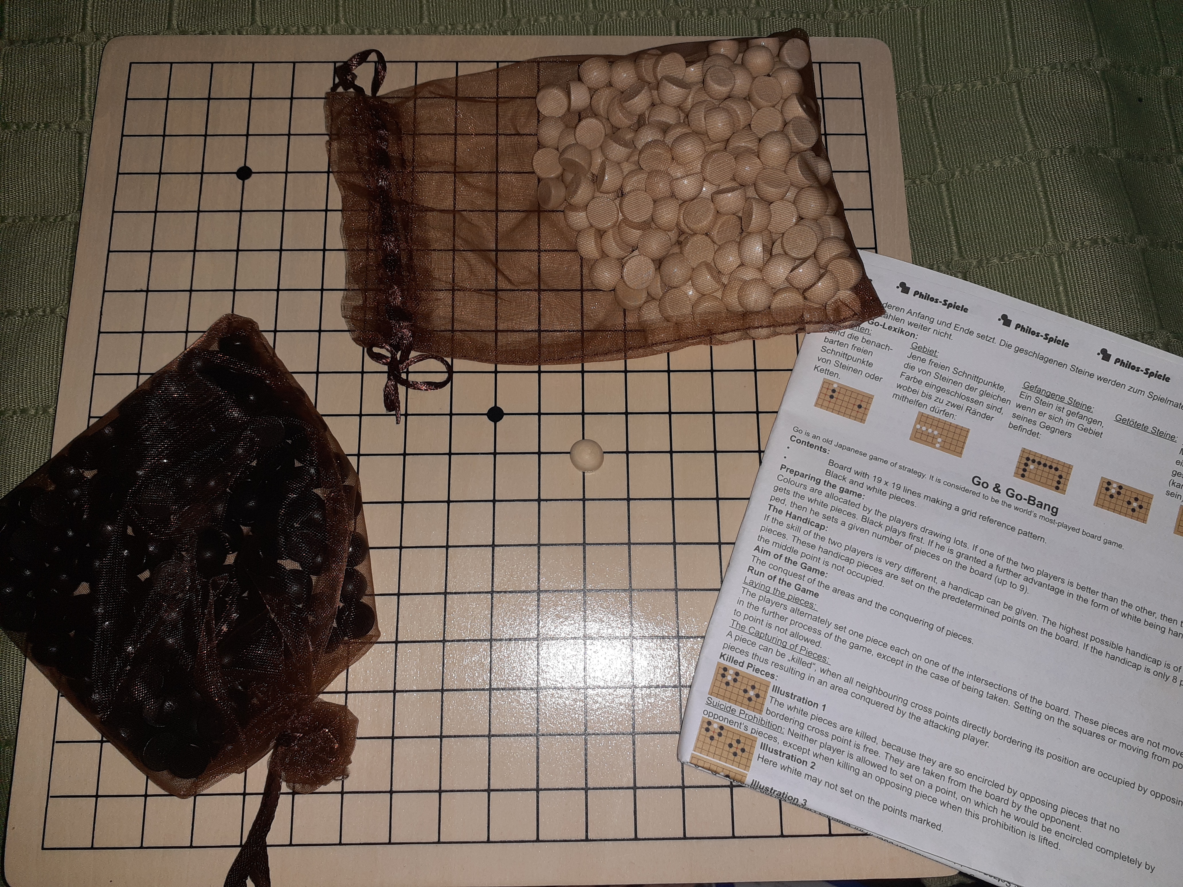 GO is a strategy game, and I'd love to play it. Since I have it now, it should be possible. Yesterday, I took a look inside the box. The contents were a bit disappointing. Such pathetic, small pieces for the price I paid. It's going to be hard to pick them up. It's more of a game for cheapskates. Anyway, I have it, and if no one plays this most-played strategy game in the world (originally Japanese, according to the instructions) with me, I'm going to see if I can play it alone. I mean, if you can play chess alone, surely playing GO alone should be possible. Or would there even be such a thing as a GO computer (instead of a chess computer)? Not that it sounds very appealing, because those things almost always win, and learning to play isn't really an option.