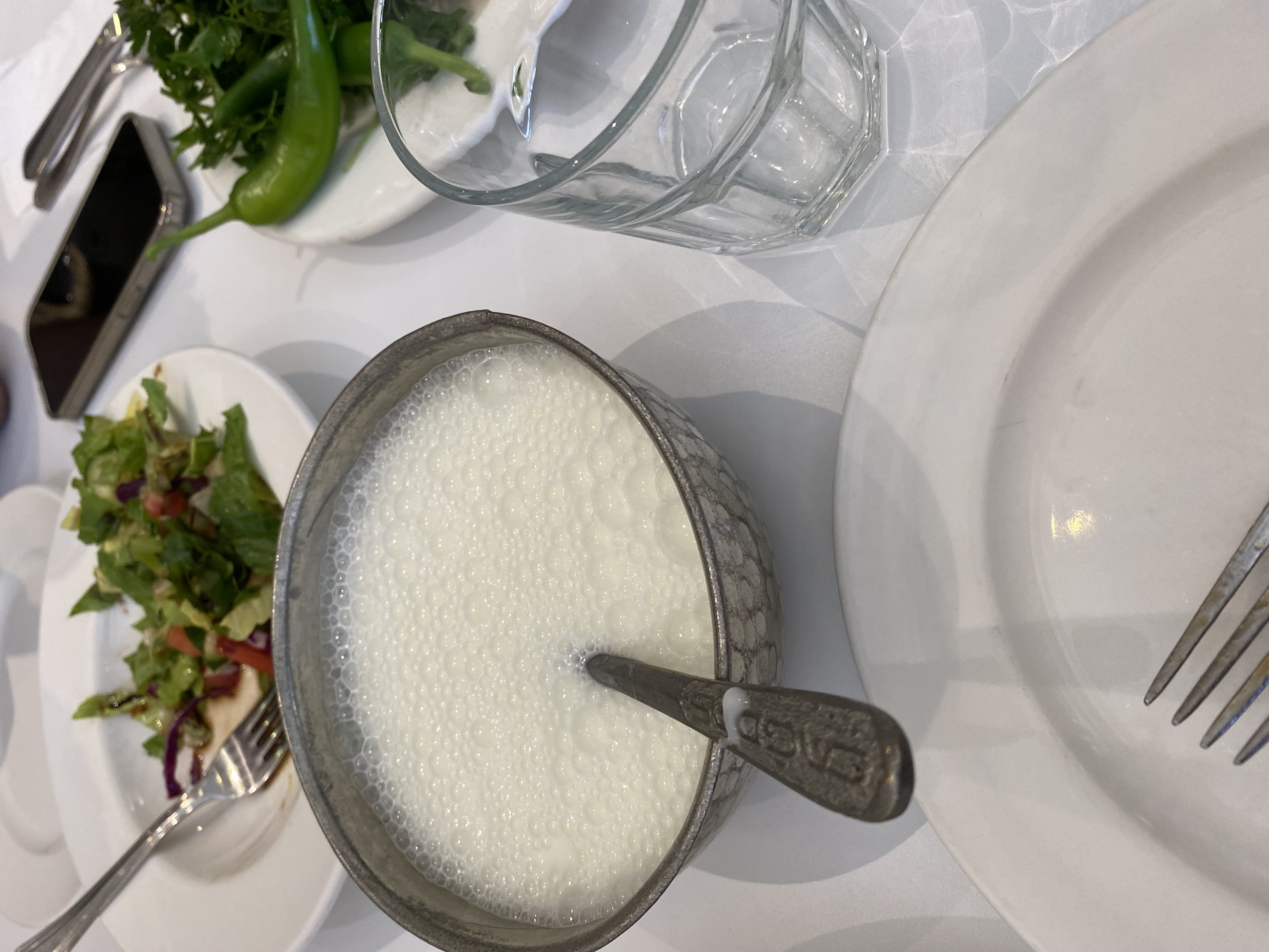 We asked for ayran and it came in a copper bowl with a small ladle. It was a different presentation and the taste was very successful.