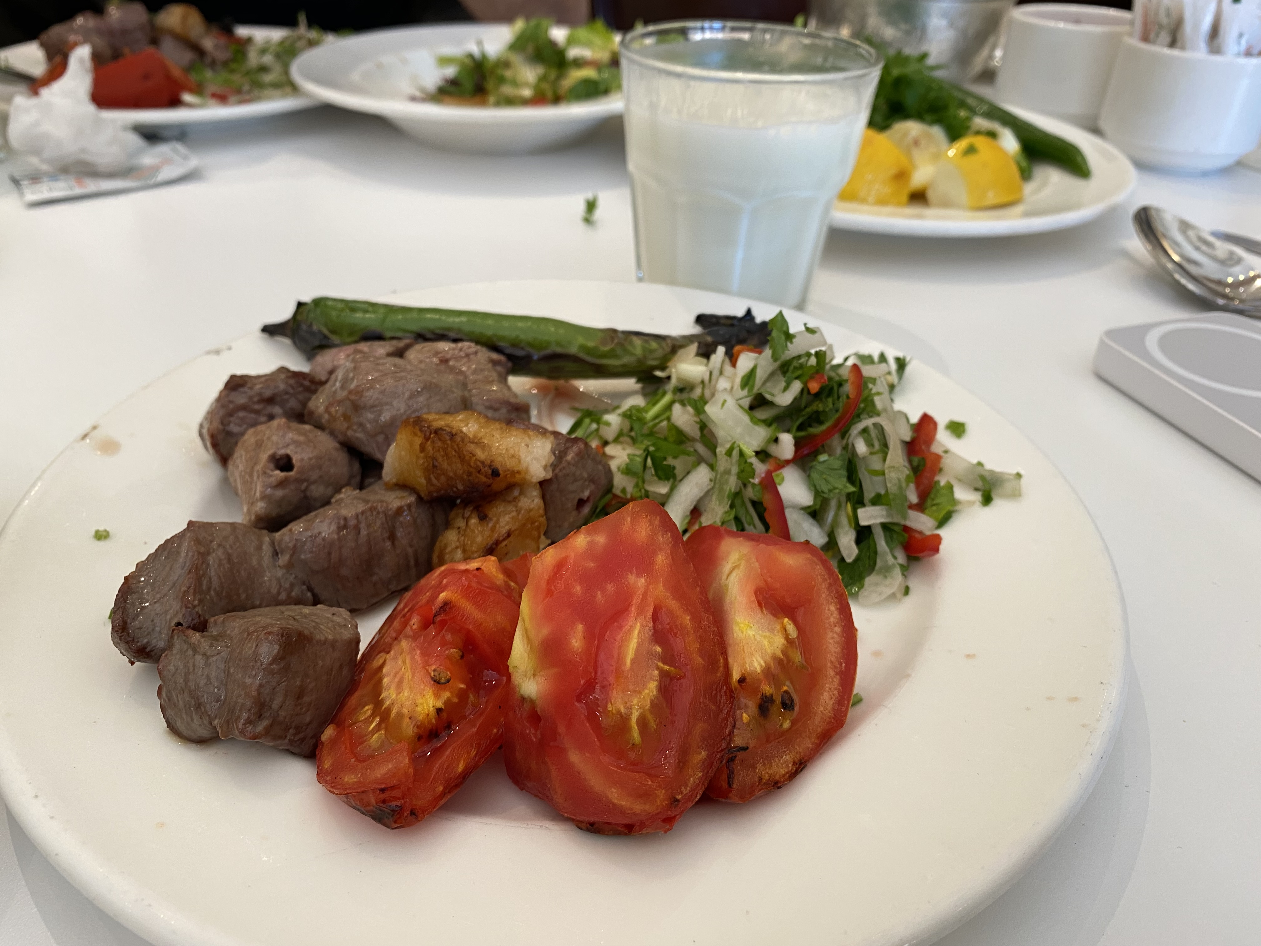 We started the meal with Lahmacun and continued with the famous küşleme. Küşleme is made from cubed meat as you know, but it is made from the softest part. Since it is cooked a little, you eat very soft meat.