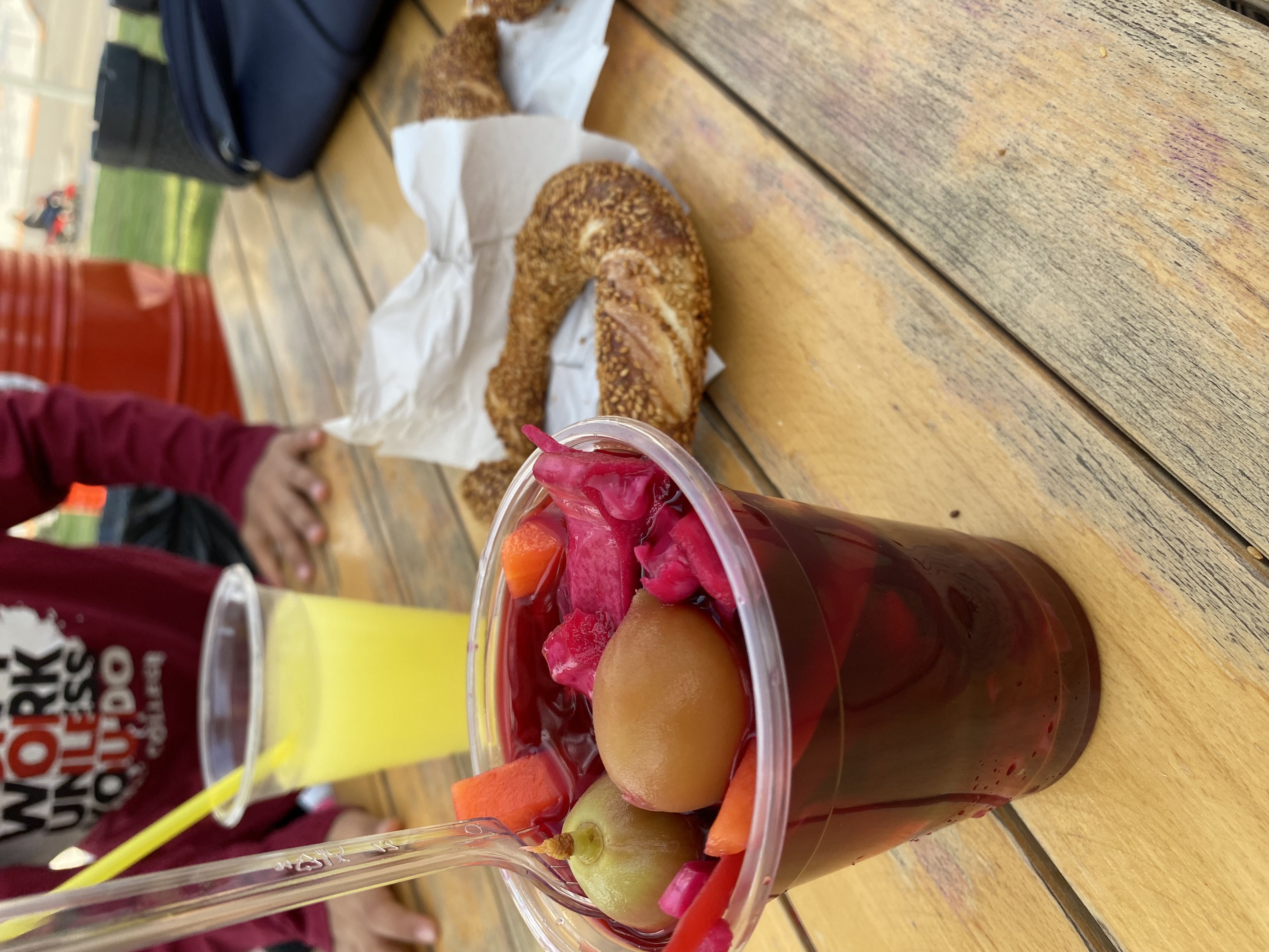 Turşu çeşitleri çok fazlaydı ben aralarından havuç,Çağla,kırmızı pancar ve lahana olanını seçtim.Turşu bardağını şalgam ile doldurdu.