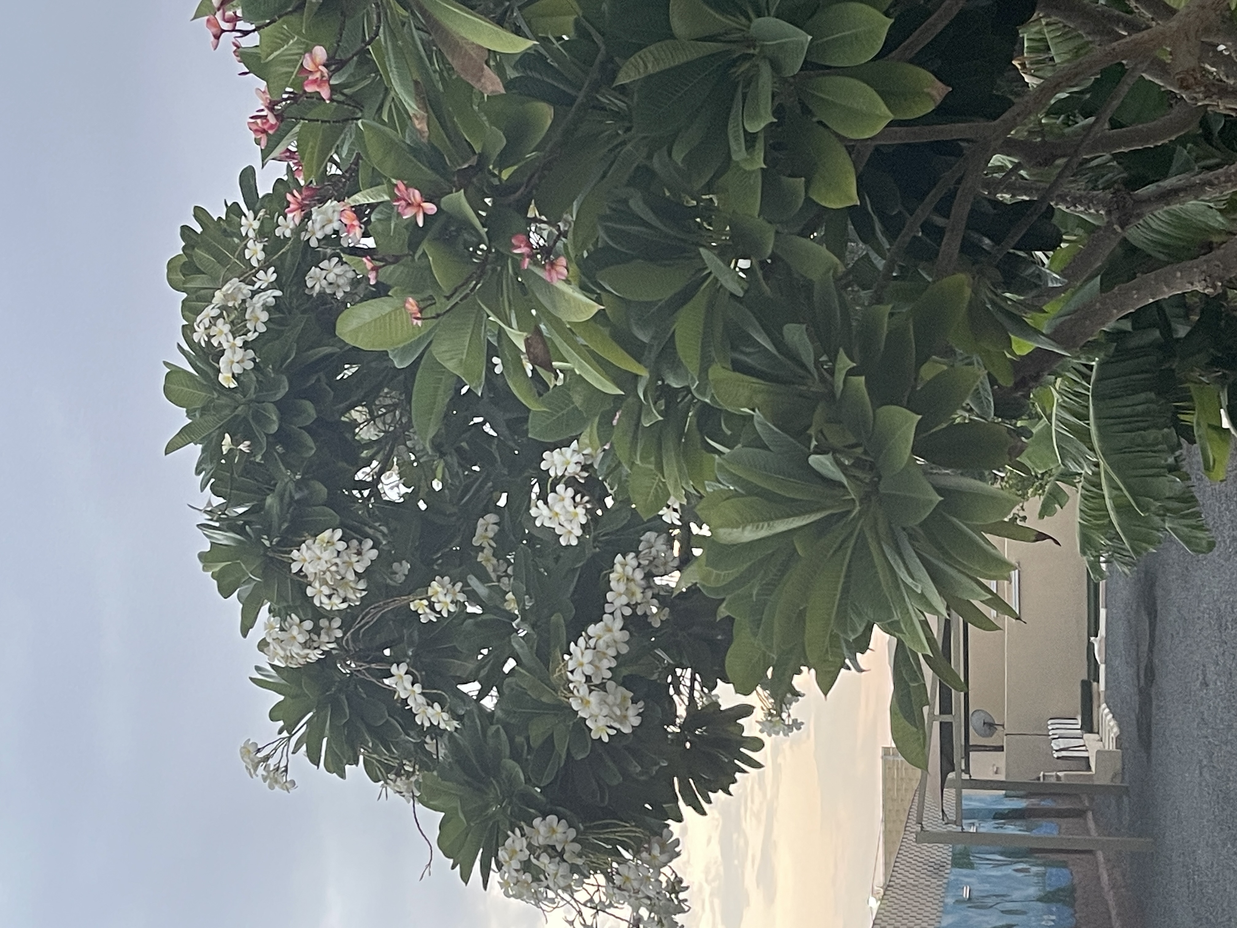 কাঠগোলাপ ফুল, যাকে ইংরেজিতে "Plumeria" বলা হয়, তার সাদা রঙে মুগ্ধ করার শক্তি রয়েছে। এই ফুলগুলো সাধারণত উষ্ণ আবহাওয়ার অঞ্চলে দেখা যায়, বিশেষ করে দক্ষিণ এশিয়া এবং হাওয়াইয়ের মতো জায়গায়। ছবিতে দেখা এই সাদা কাঠগোলাপ ফুলের সৌন্দর্য এবং এর শীতল সুর এক অসাধারণ প্রাকৃতিক দৃশ্য উপহার দেয়।