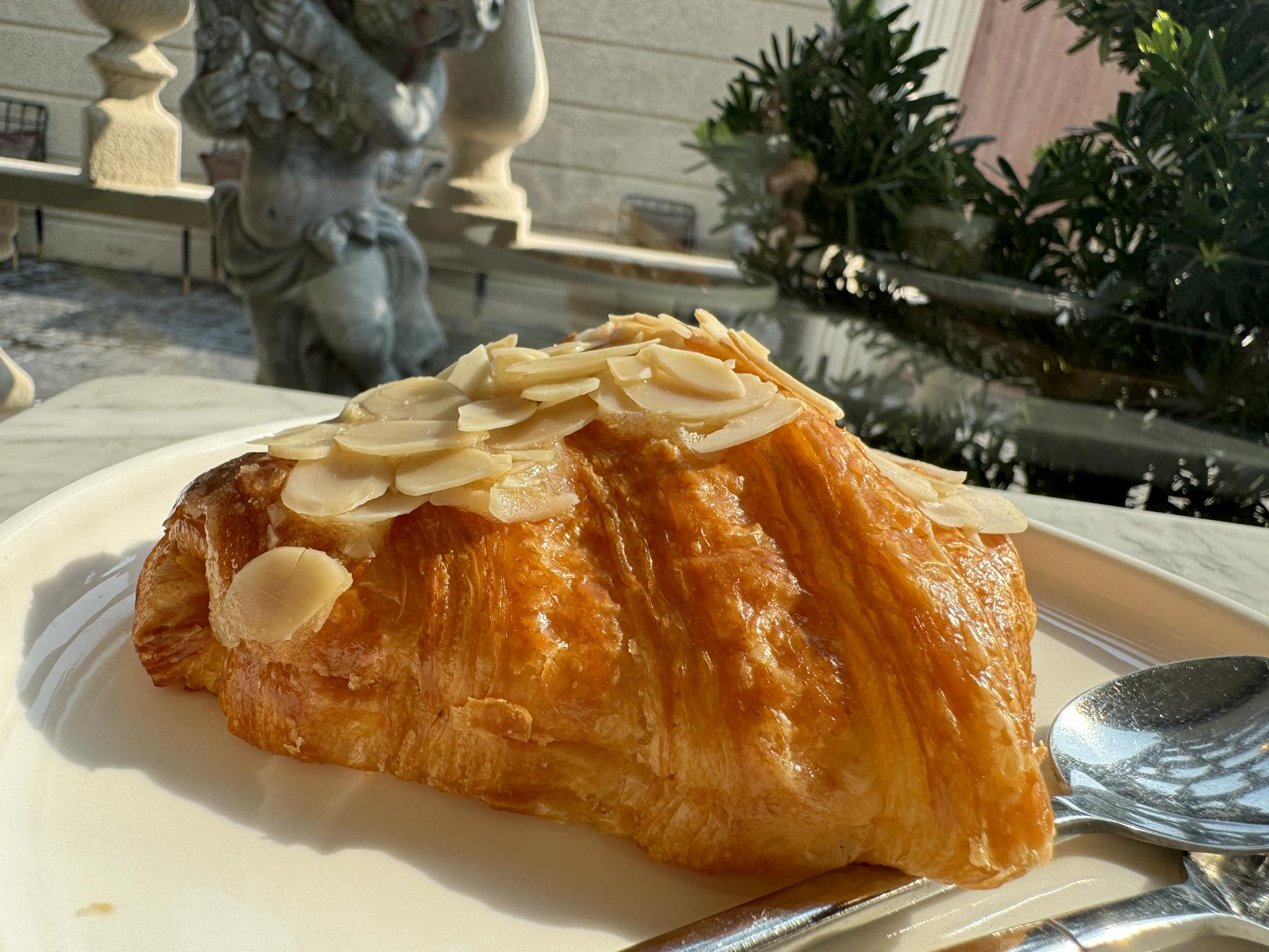 - Almond Croissant It's a menu that I really like every time I go to a café. Because it has a sweet, soft taste, it is very delicious when eaten with coffee. This shop has 2 flavors for us to choose from: traditional croissant and almond flavored croissants