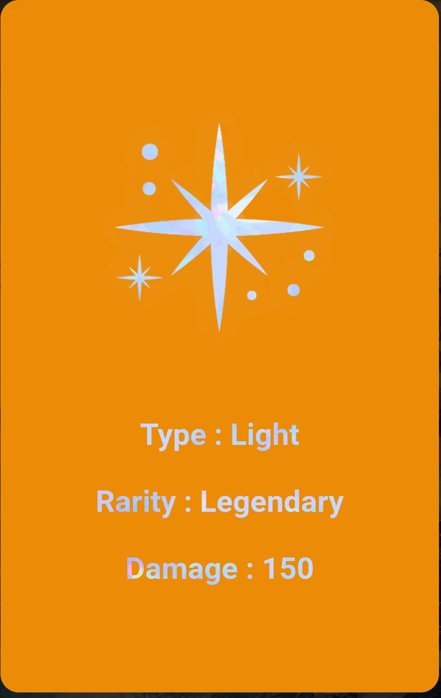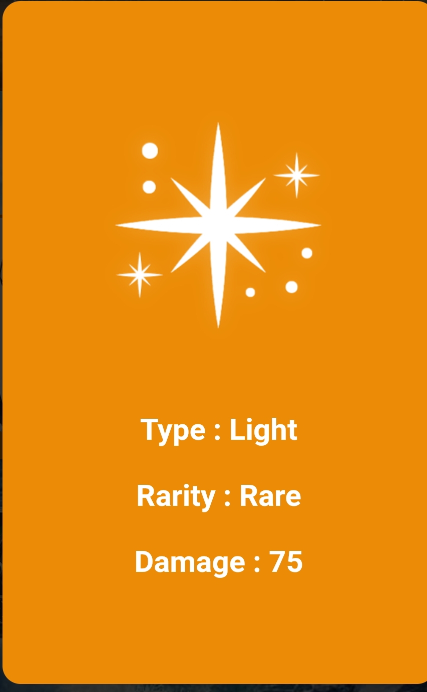 This orange colored card is visible to everyone. Its type is Light, it has Rarity common and its damage is 45. It is a good guard. It is not that bad because there are many low cards, but it is a good card. Through it, I can deal a lot of damage to the monster.