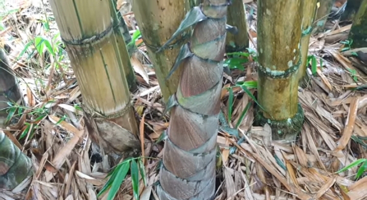 This young bamboo has a lot of fine hairs that if they stick to our hands, it feels very itchy. But we can use a unique method by using firework leaves, then rubbing them on our hair to clean them.
