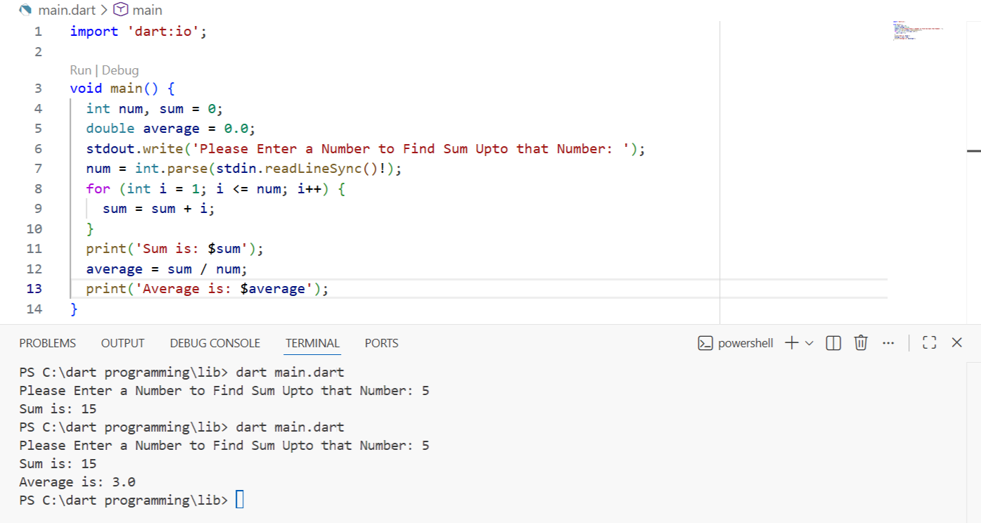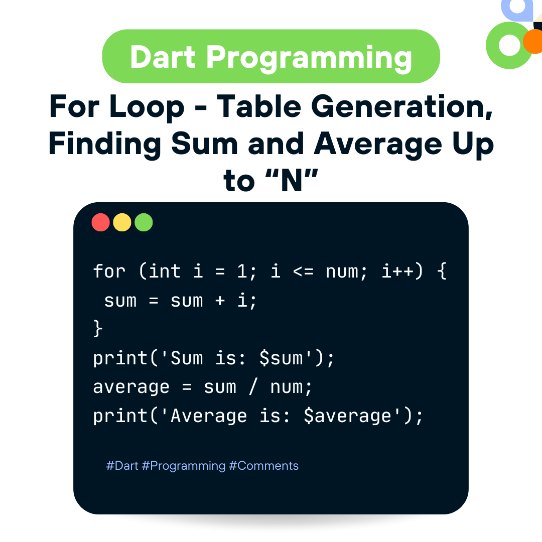 Finding Sum and Average Upto n Number in Dart Programming Language
