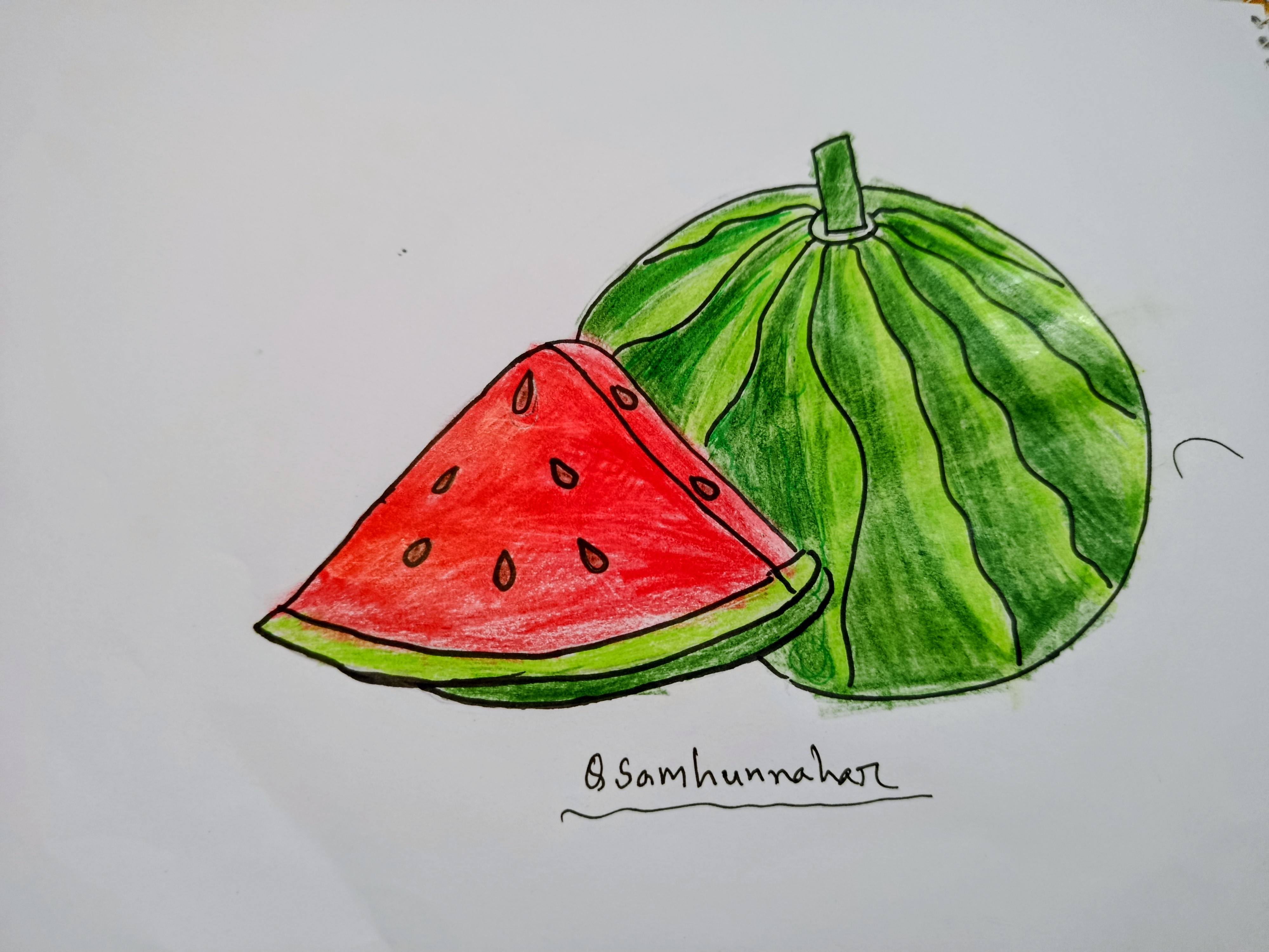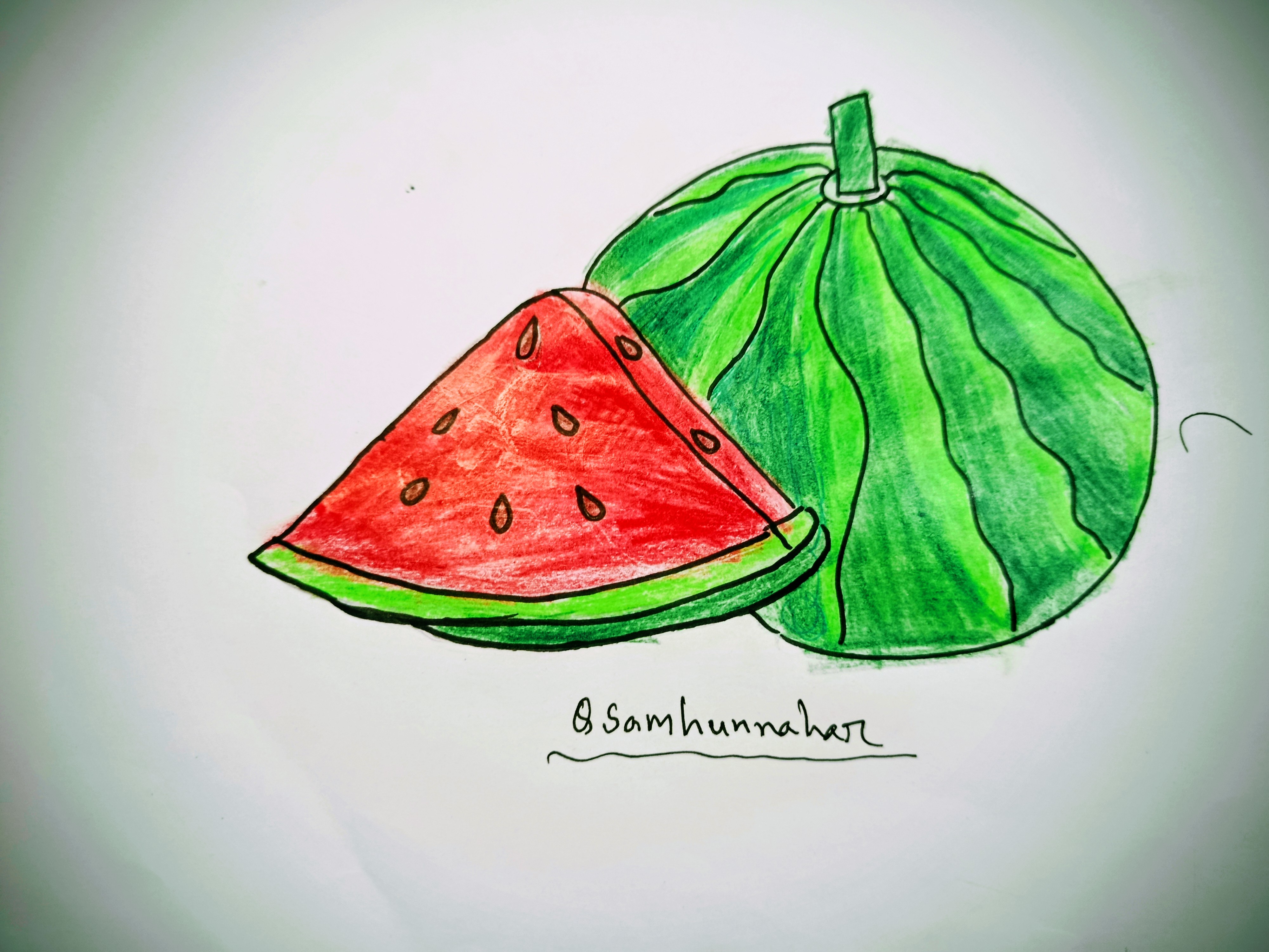 I have made an art of a fruit that is everyone's favorite. I have come to share it with you. Still, it looks like a real watermelon. Especially when the color combination is beautiful, it is very nice to see. So today I made a watermelon design and colored it, and shared it with you. I hope you like it. Friends, I will be inspired if you tell me how you liked the watermelon art I shared today. Since you inspire me so much, I try to share my favorite things by making art again and again. Without further ado, let's get started.
