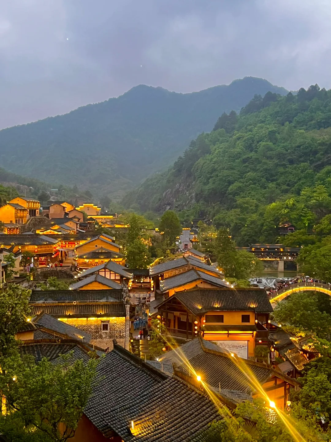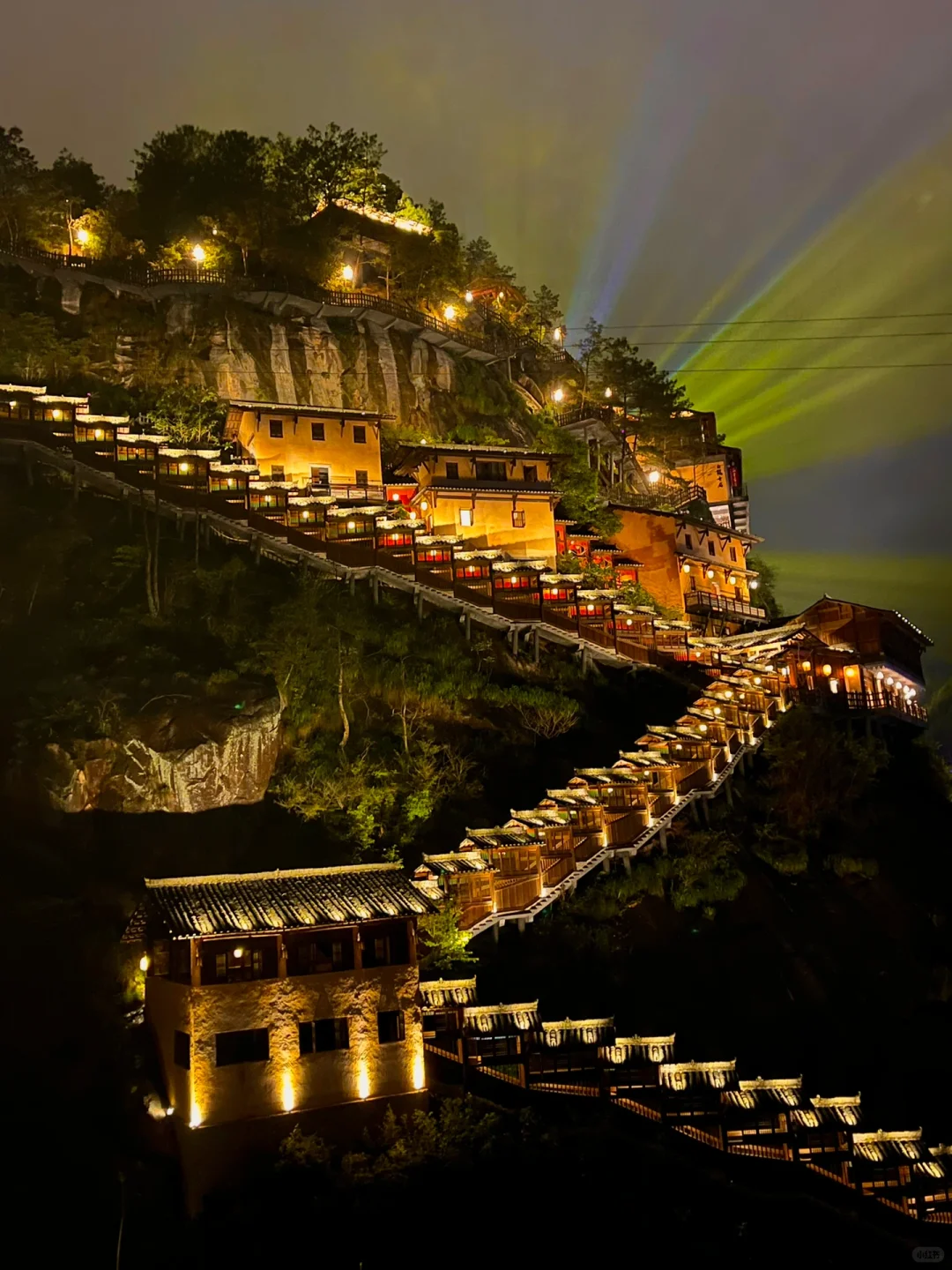 Tucked within the mountains of Shangrao, Wangxiangu rests where drifting mists wander like quiet spirits. Wooden lodges cling to the cliffs, their warm lights at dusk sketching a serene watercolor of mountains and air. At dawn, a cool breeze slips through the forest, carrying the scent of fresh moisture, while the murmuring stream gently washes away the fatigue of travel. Here, one seems to lay down all worldly noise, listening only to the calm and steady breath of nature.