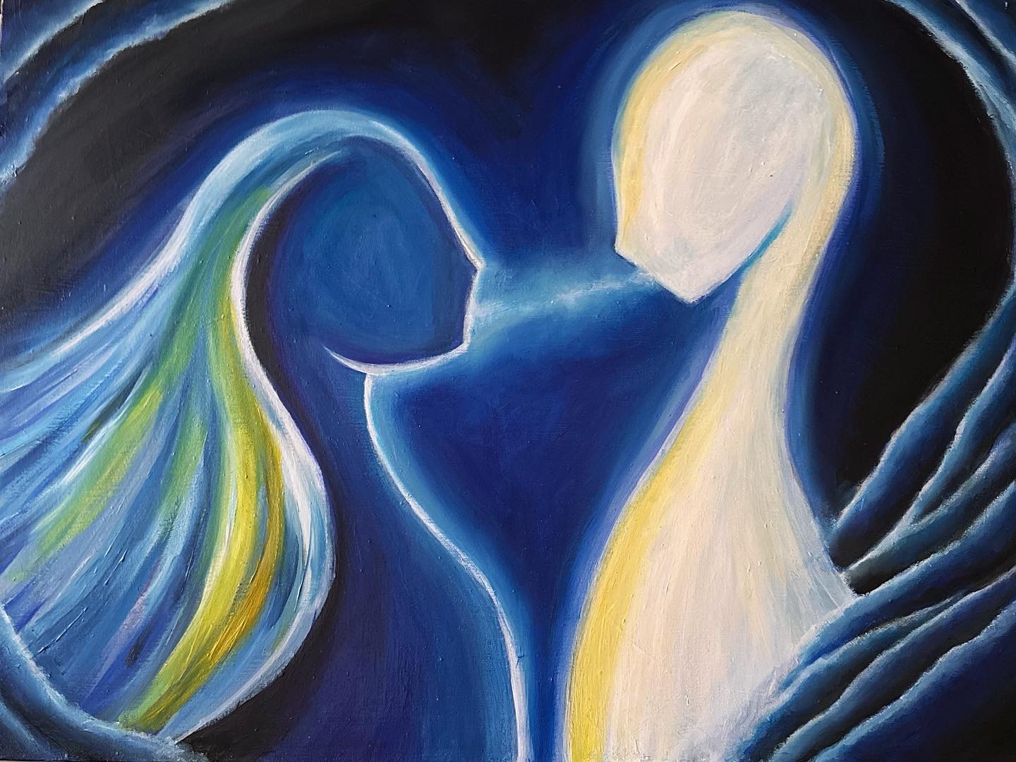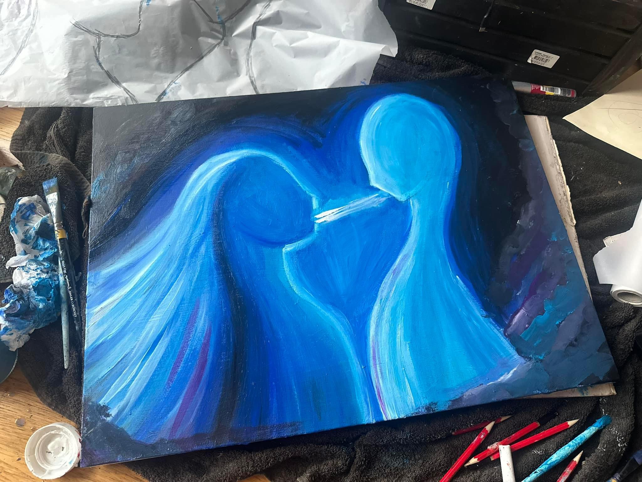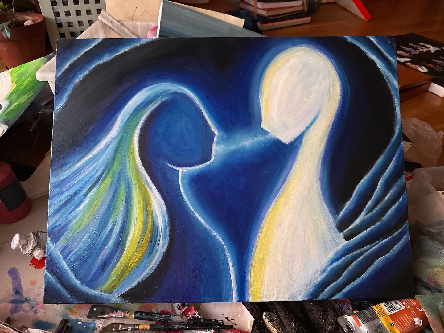 “Communication”. Another layer down on this one, this time with oils. I’ve been focused on paintings that represent the chakras and a strong one / two colour focus lately and delving into the power of colour therapy.