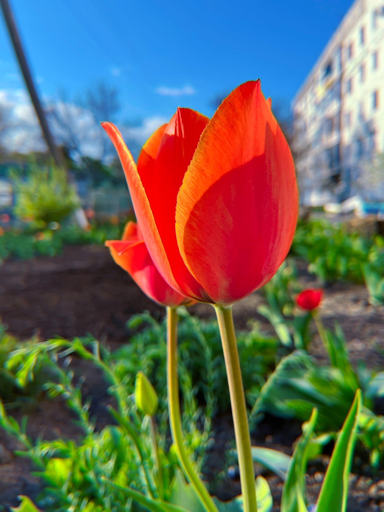 Tulips grow well in the garden, in flower beds. They are almost unpretentious. Long watering and weeding.