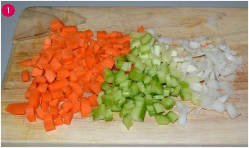 Umyte a olúpte zeleninu a nakrájajte na kocky.