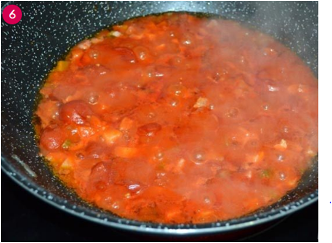 Pridajte paradajky na panvicu, dochutíme soľou a varíme 15 minút.