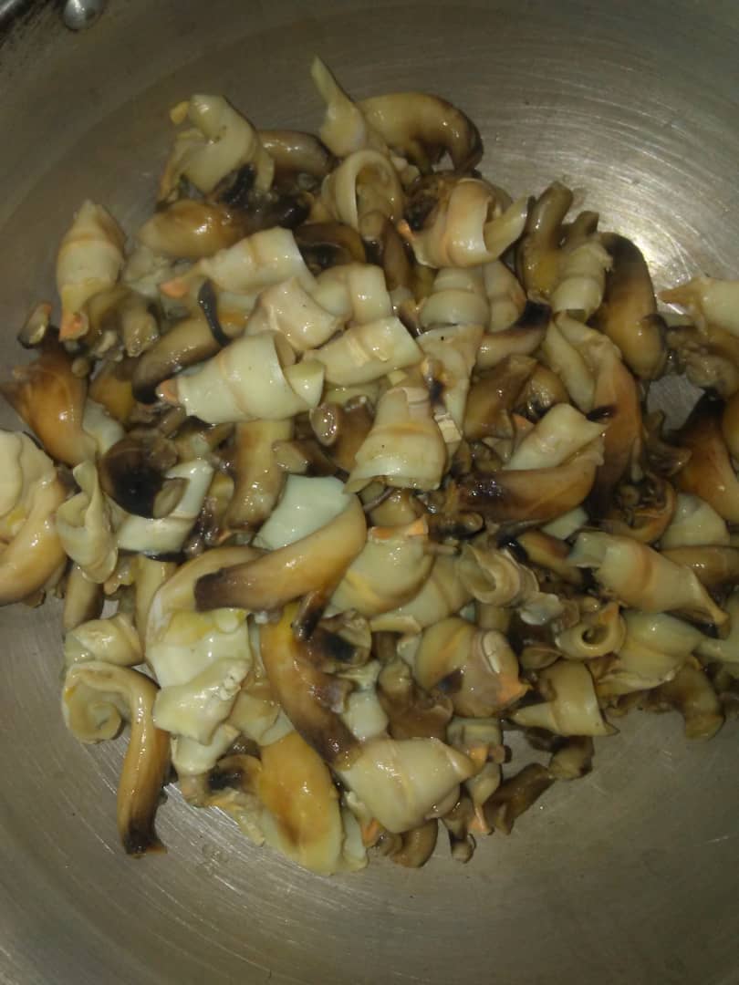 Mi almuerzo de hoy fue ceviche de caracol con yuca, no había probado el ceviche de caracoles pero mi suegro me dijo como los iba a preparar. Al principio no quería comerlo. Pero quedo buenísimo. Los caracoles se limpian muy bien luego se ponen a sancochar con sal.