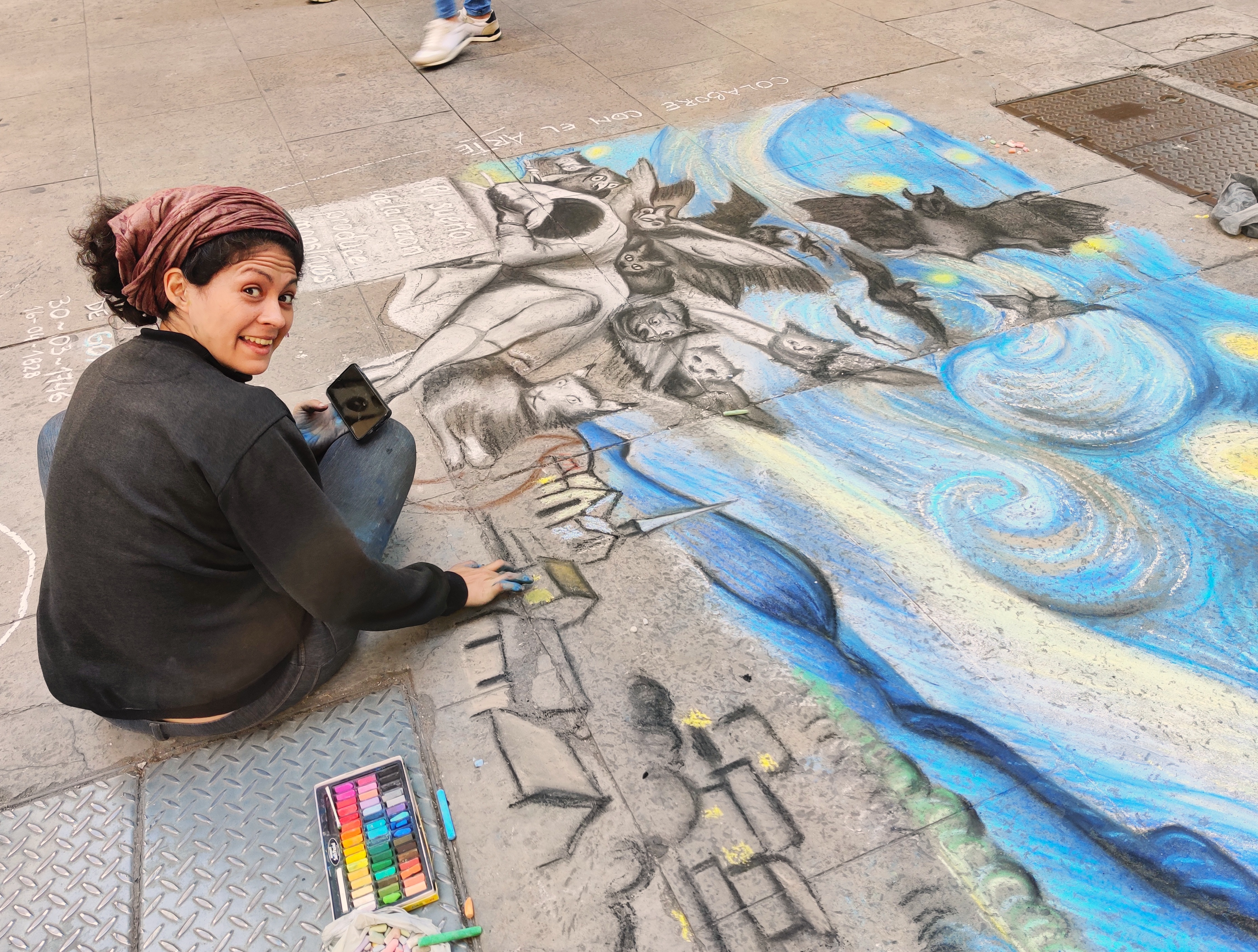 This piece is a combination of the works of Van Gough and Goya - a reproduction that melts two different paintings together.