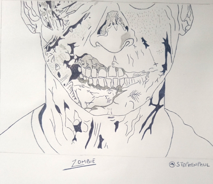Anyways, I decided to come back with this Sketch work of a ZOMBIE, it's actually a continuation of the DRAWLLOWEEN Challenge by @offthegrid, I know, super belated! but hey istron;s better late than never! However, I'm aiming at pushing myself in this niche to see how far I can really go. That's the beauty of this community, there's so much to be taught and learned through timeless interaction and active engagement here.