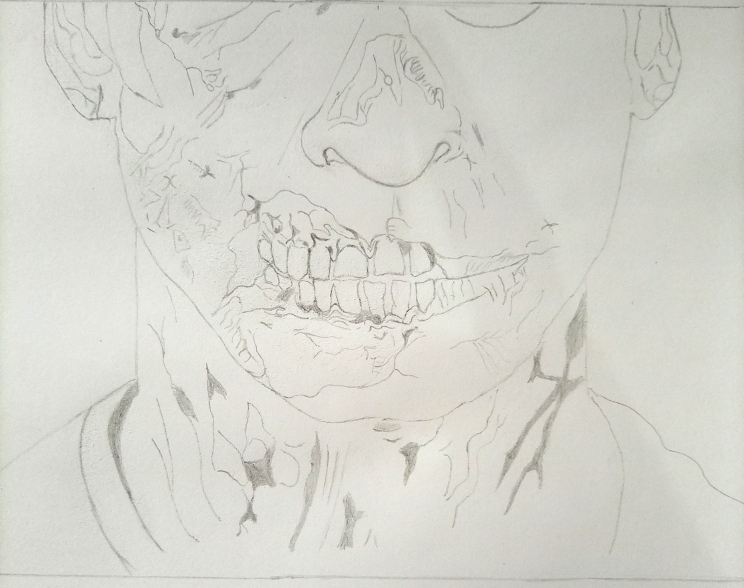 Firstly, I made a rough sketch of the entire work with a pencil, taking time to highlight the differences in shade throughout the work, I made lots of mistakes, thanks to the eraser, you might only notice a few!