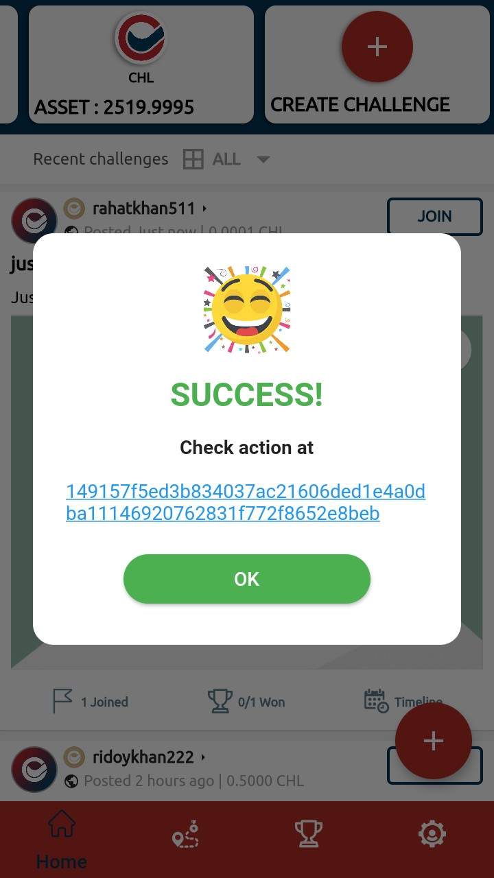 Today i start my 6th challenge.My challenge create is done.this is the confirmation.when you have any problem just knock this people they solve it @citimillz @ackza @chaceeskam.when you promote this app the owner give you $2 upvote and send you some chlp token in your steem-engine.What is CHLP?
