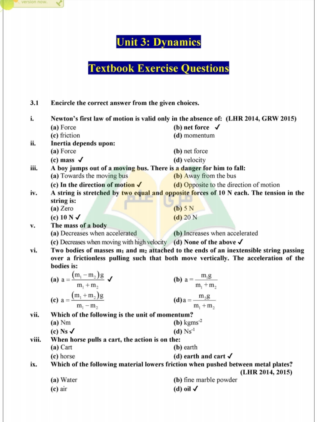Looking for the notes of physics chapter 3 Dynamics 9th class? chapter 3 Dynamics MCQs, Numericals Problems? Here are the Matric 9th Physics Chapter 3 Notes - MCQs, Questions and Numericals pdf. pdf download or view online.9th Physics Chapter 3 Numericals Solved