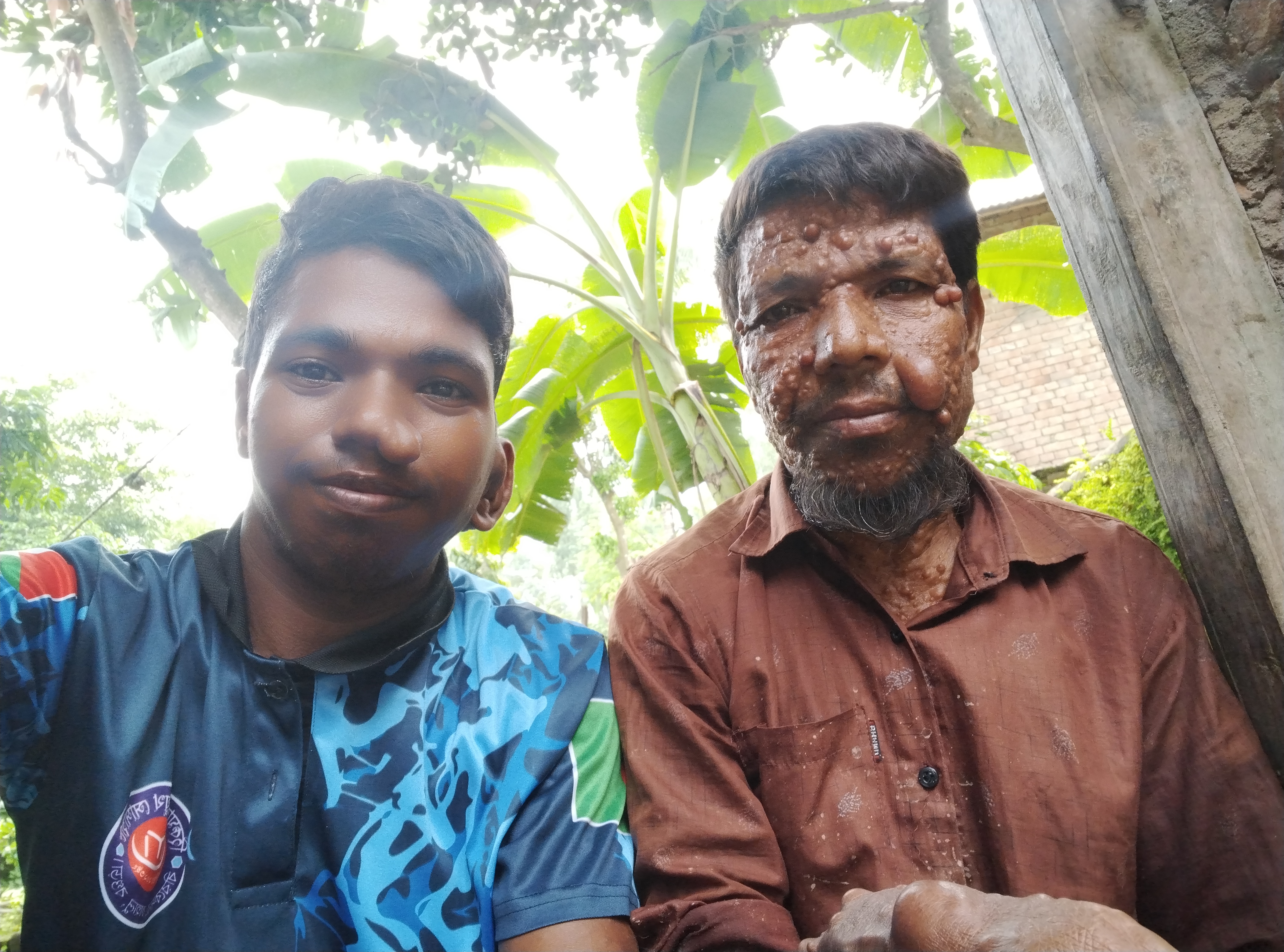 এখানে ছবিতে শুধু আমাকে আপনারা দেখতে পাচ্ছেন। তবে এটা আমার জন্মগত রোগ এবং আমার বাবারও একই অবস্থা তবে আমার বাবার এটা জন্মগত রোগ ছিল না আমি এবং আমার বাবার একটি ছবি। আমার বাবা ও ইটের ভাটায় চাকুরী করে। তবে ইটের ভাটার চাকরি ছয় মাস কাজ হয় এবং ছয় মাস বসে থাকা লাগে কারণ গ্রীষ্মকালে ইটভাটা বন্ধ থাকে। এছাড়া আমাদের গ্রামে এক্সট্রা কোন কাজের উৎস নেই।