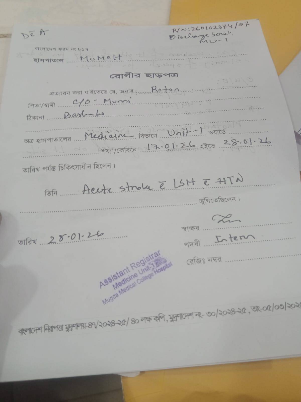 মানবিক আবেদন। অসহায় ব্রেইন স্ট্রোক রোগী চন্দন কুমার দাস (রতন)-এর পাশে দাঁড়ান।