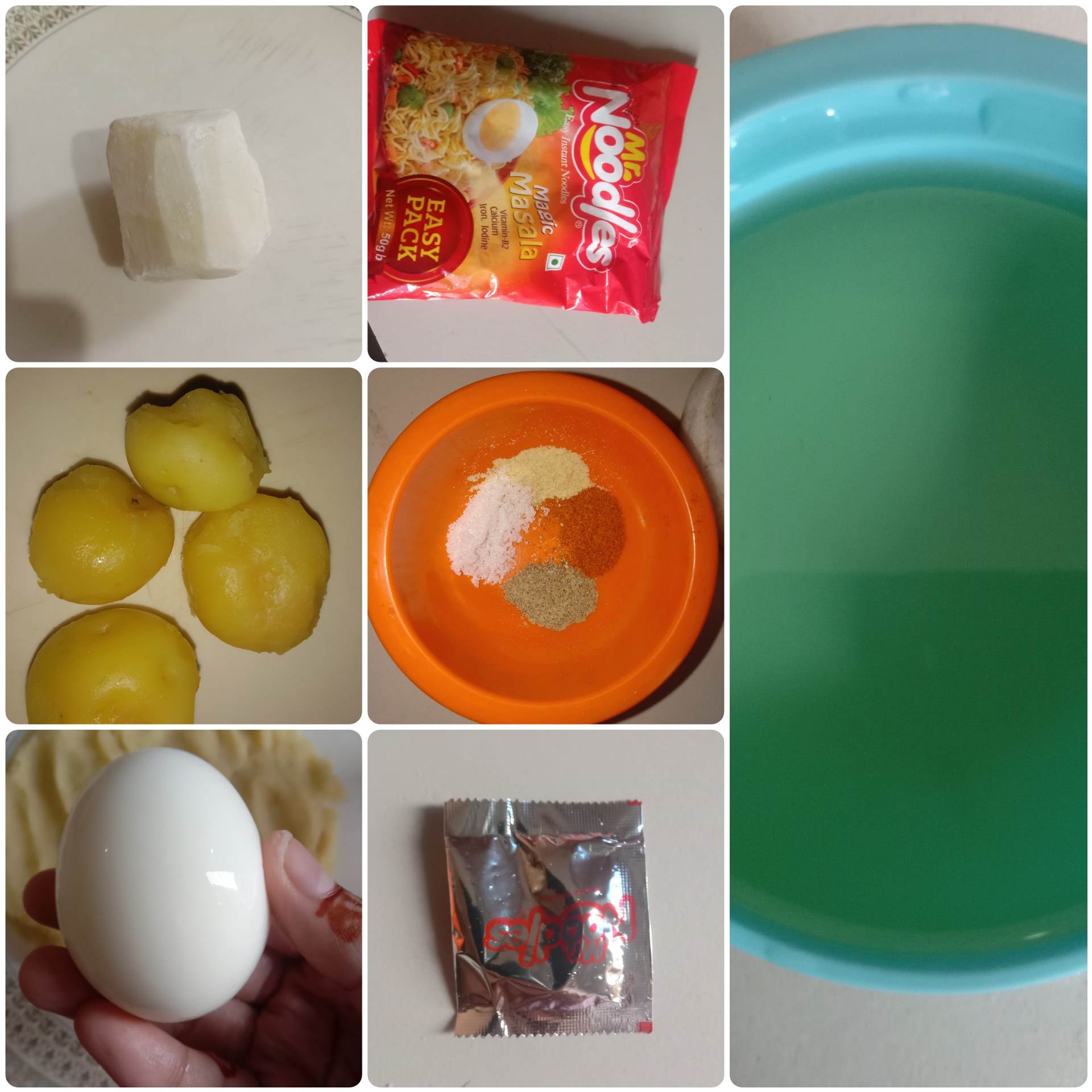 এবার আলু আর গ্রেট করা ডিমের মিশ্রণের মধ্যে এক প্যাকেট নুডলস এর মশলা,গোলমরিচের গুঁড়া,মরিচের গুঁড়া,আদাগুঁড়া,স্বাদমতো লবণ দিয়ে সবগুলো উপকরণ খুব ভালো করে মিশিয়ে নিয়েছি।