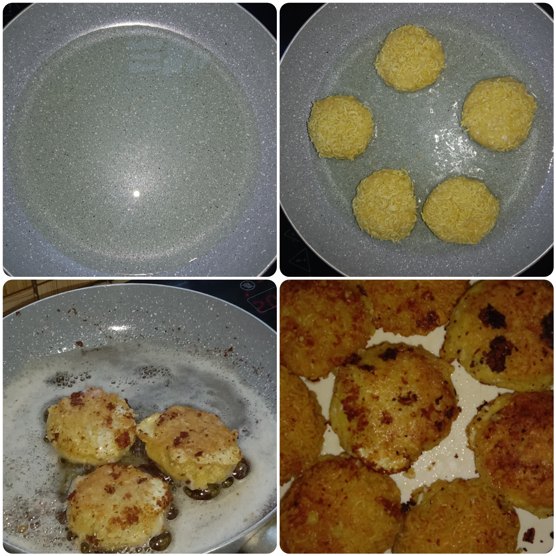 এবার এক প্যাকেট নুডলস নিয়ে শিল এর সাহায্যে ভালো করে গুঁড়ো করে নিয়েছি।বাসায় ব্রেডক্রামস ছিলো না তাই এর বিকল্প হিসেবে নুডলস এর গুঁড়ো ব্যবহার করেছি।