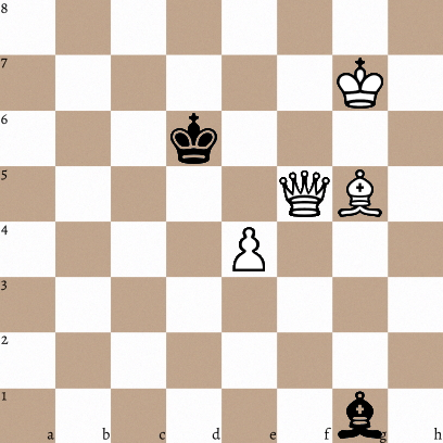 This is an original 'KQBP vs kb' four-move chess puzzle by Chesthetica using the fairly new computational creativity approach known as the DSNS (Digital Synaptic Neural Substrate). You can learn more about the DSNS here.