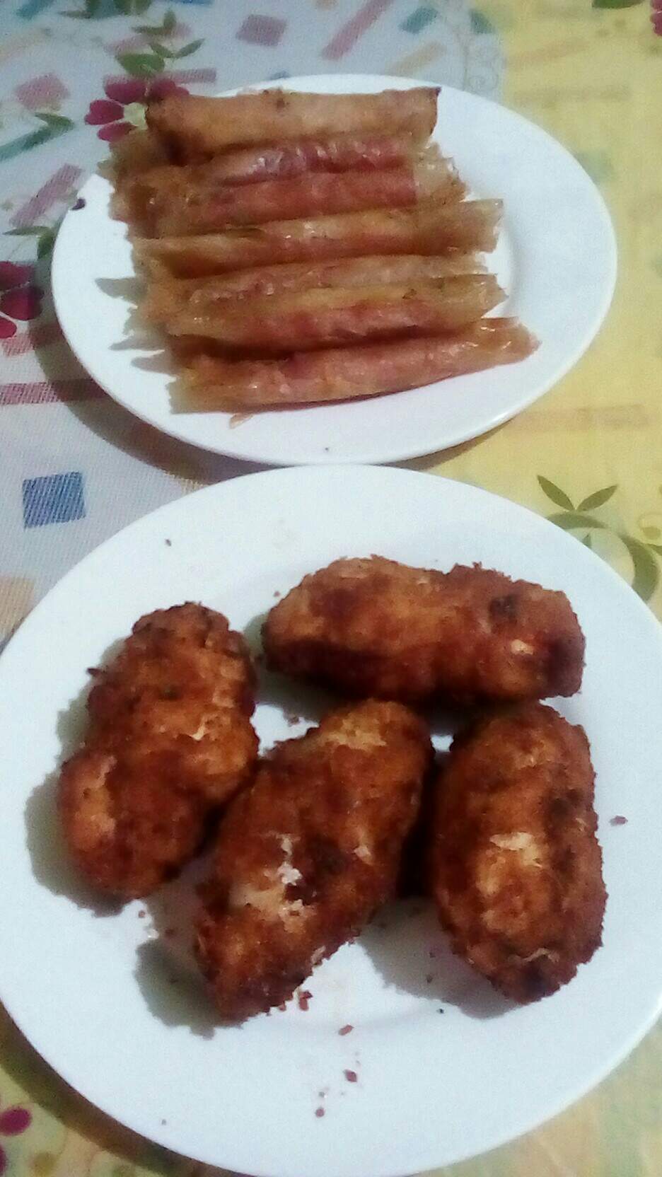 Our dinner for tonight glordon blu made of chicken breast with ham & Cheese filling and coated in bread crumbs.the other one is chicken lumpia with ham & cheese filling.