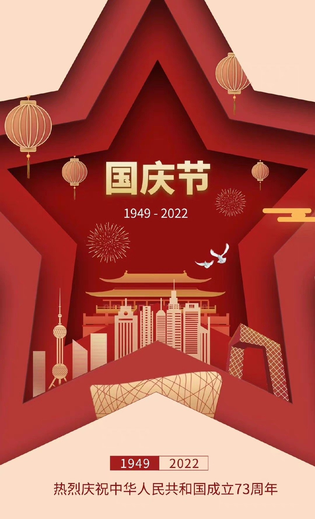 今天是中华人民共和国的73岁生日,为了庆祝国庆节,我们国家会放假7天,大家可以轻松地出去旅游、陪伴家人。