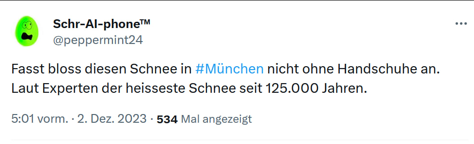 Als staatlich geprüfter und zugelassener Crash-Test-Dummy für KI, AI und Bots jeglicher Art, darf ich das. :D