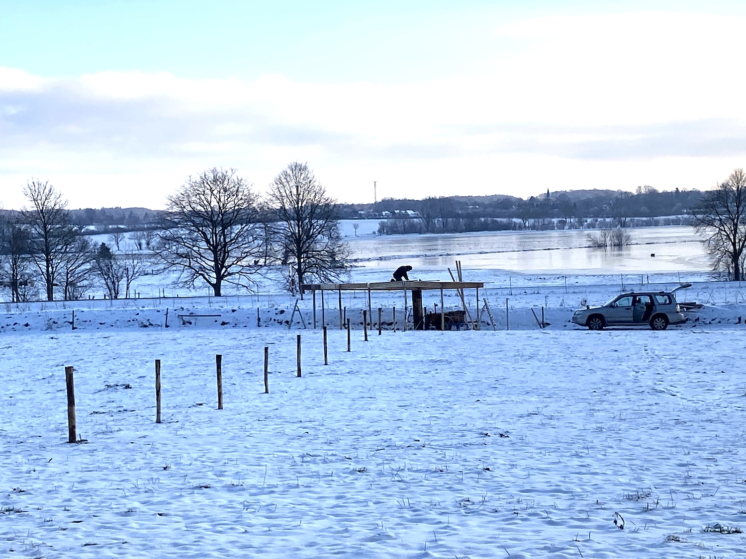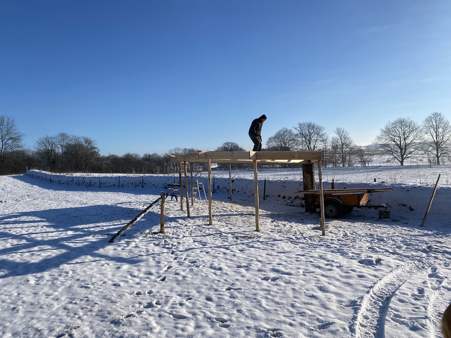 Yes, a wonderful day. Freezing cold though, so not so good for the fingers to work on. But it's no use: our barn has to be finished, even if it takes three times as long to work on it in the cold.