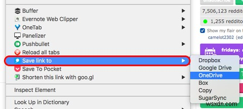 예를 들어, 온라인에서 저장하고 싶은 사진을 본 경우 그 위에 마우스를 올리기만 하면 각 클라우드 서비스에 대한 작은 로고가 팝업됩니다. 당신의 독을 선택하고 Bob은 당신의 삼촌입니다. 그것은 가는 중입니다.