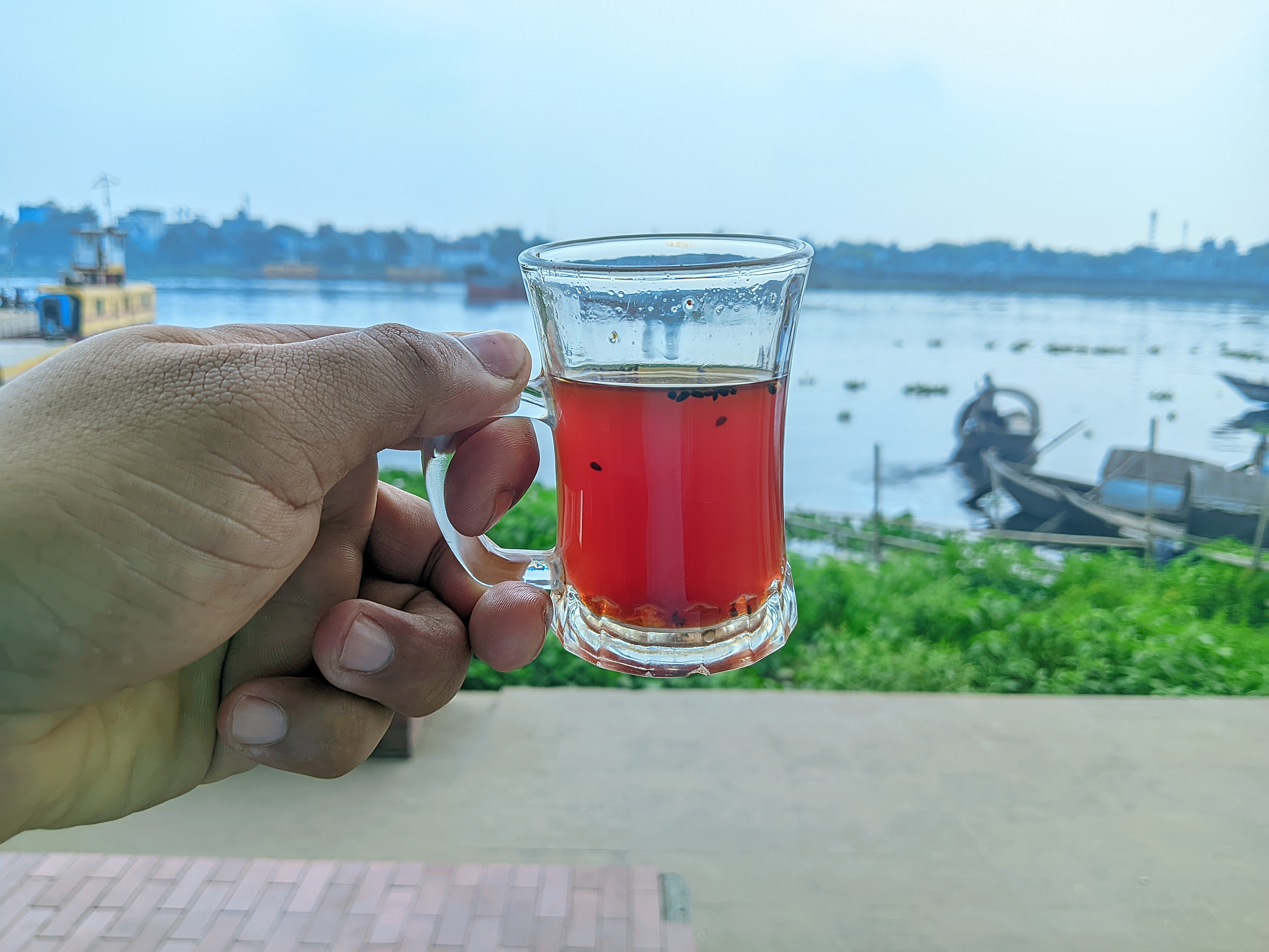 This terminal is not only a place of transportation; it is also a small economic centre. Small shops, hotels, tea stalls, and fruit shops have been built next to the terminal. The livelihood of many local people depends on this terminal-centred business. Passengers waiting for the ferry buy tea, snacks, or various essential items and sit and enjoy tea at the seating area. As a result, the ghat area is always lively. I also enjoyed black tea there. The terminal operates from 6 am to 6 pm.