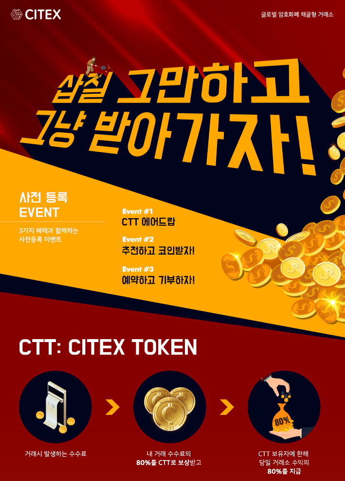 CITEX 채굴형 거래소 사전등록하면 거래소 오픈시 거래소 배당코인 무료로 받습니다 ( 50citex )