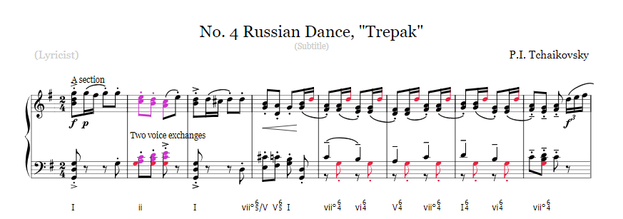 Here is my harmonic analysis of Trepak. Keep in mind that: