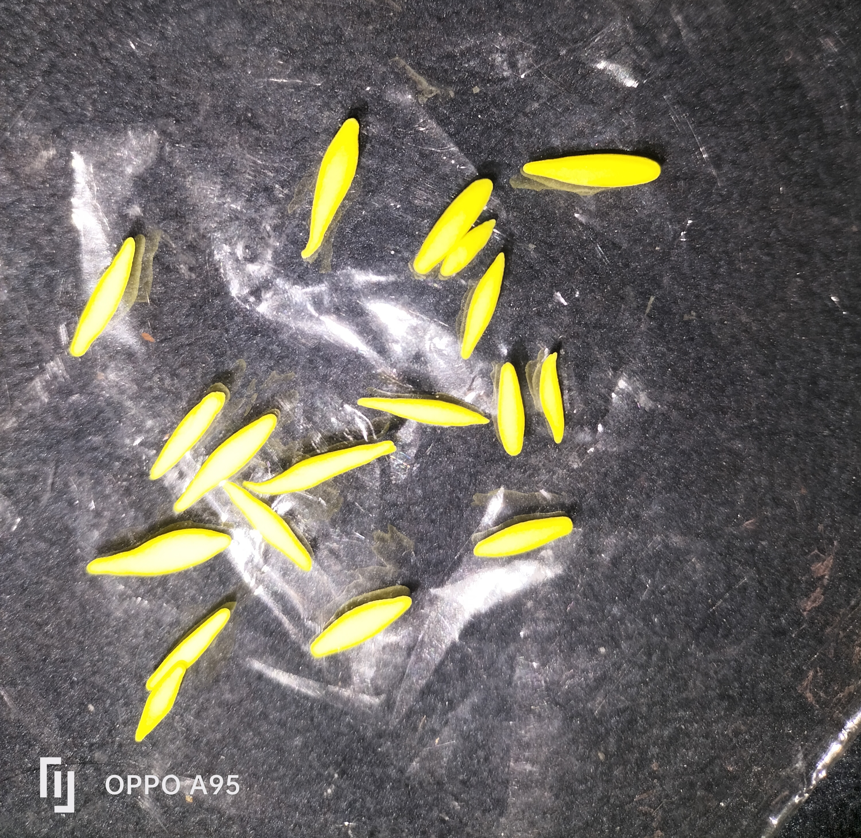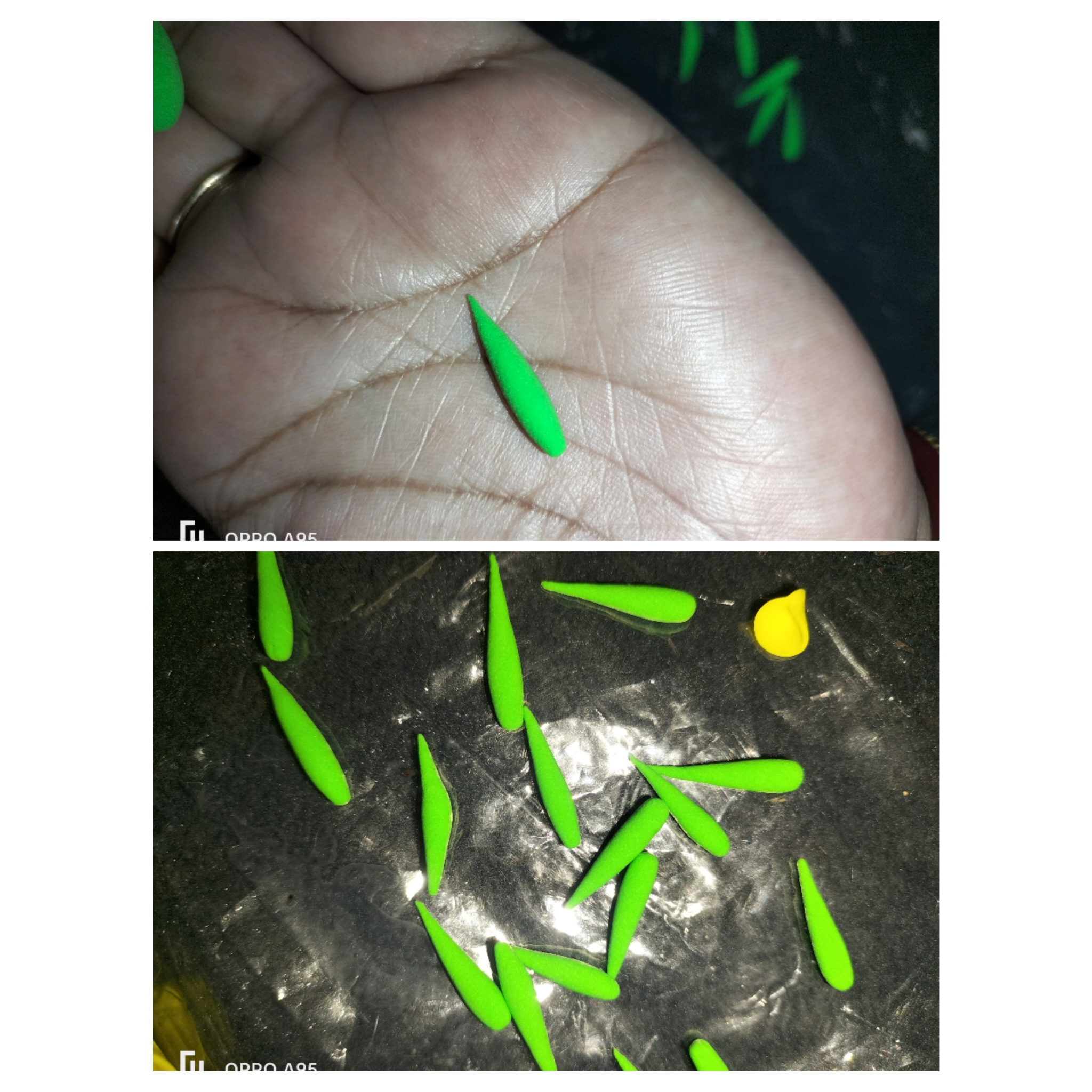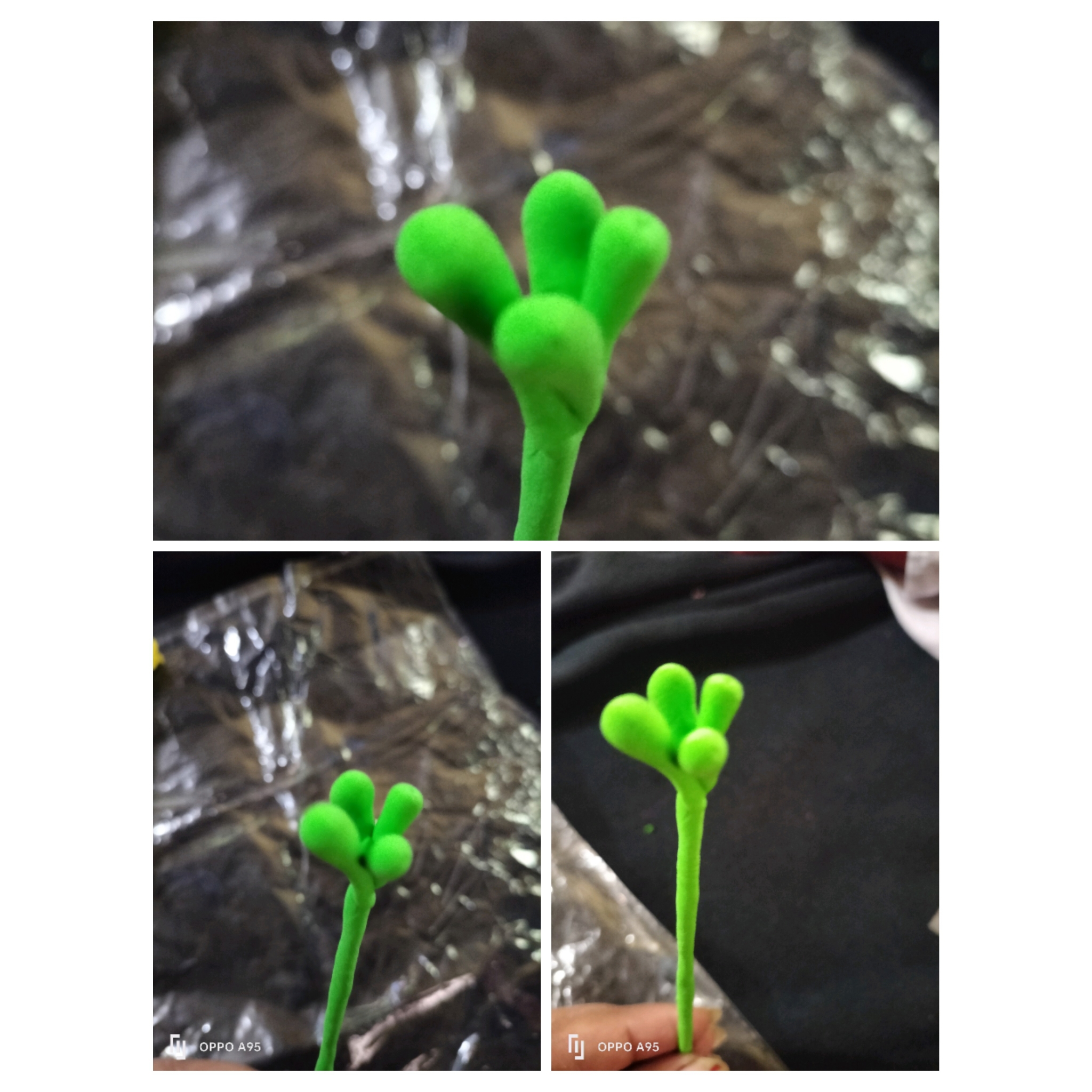 এখন সবুজ কালারের ক্লে দিয়ে সরিষার সিম বানিয়ে নিয়েছি মানে যে সিমের ভীতর থেকে সরিষা পাওয়া যায় সেগুলো।
