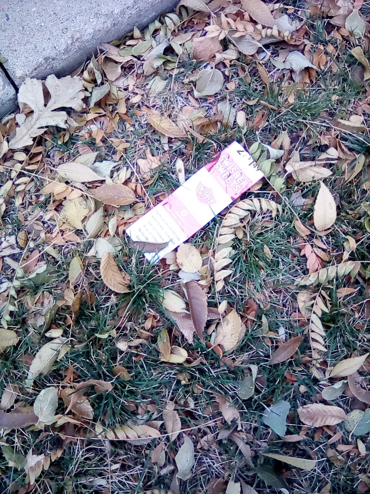 I only found four cigarette butts today, not because I imagine people aren't throwing them on the ground, but because they are probably just covered in fallen leaves, lol. So here's a cigar packet for you!