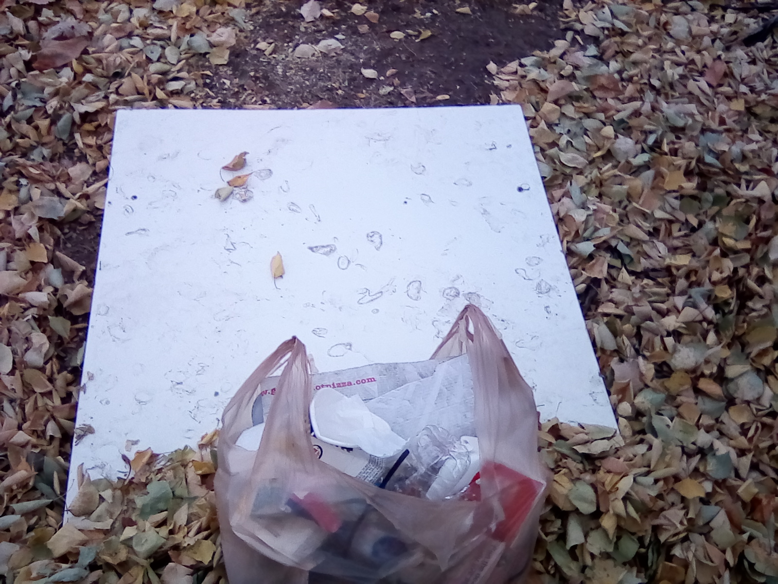 And here is the random board I found, complete with staples sticking out of it which I tore my bag on, but luckily, I picked up another bag so I didn't re-spill the trash everywhere. Which brings us to the DTube video!