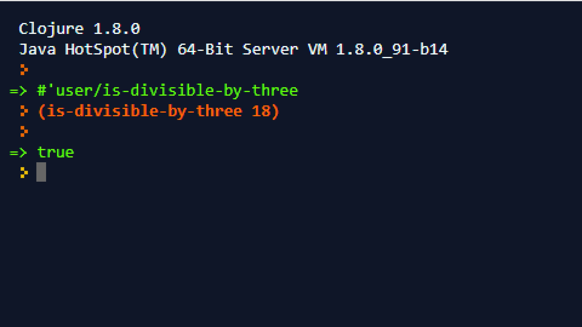 Now you might wonder what the point of making a function which checks whether a number is divisible by 3 is. After all, it's just as easy to write ( = 0 ( mod 18 3 )) as it is to write ( is-divisible-by-three 18 ). Well, I did manage to make a function, didn't I?