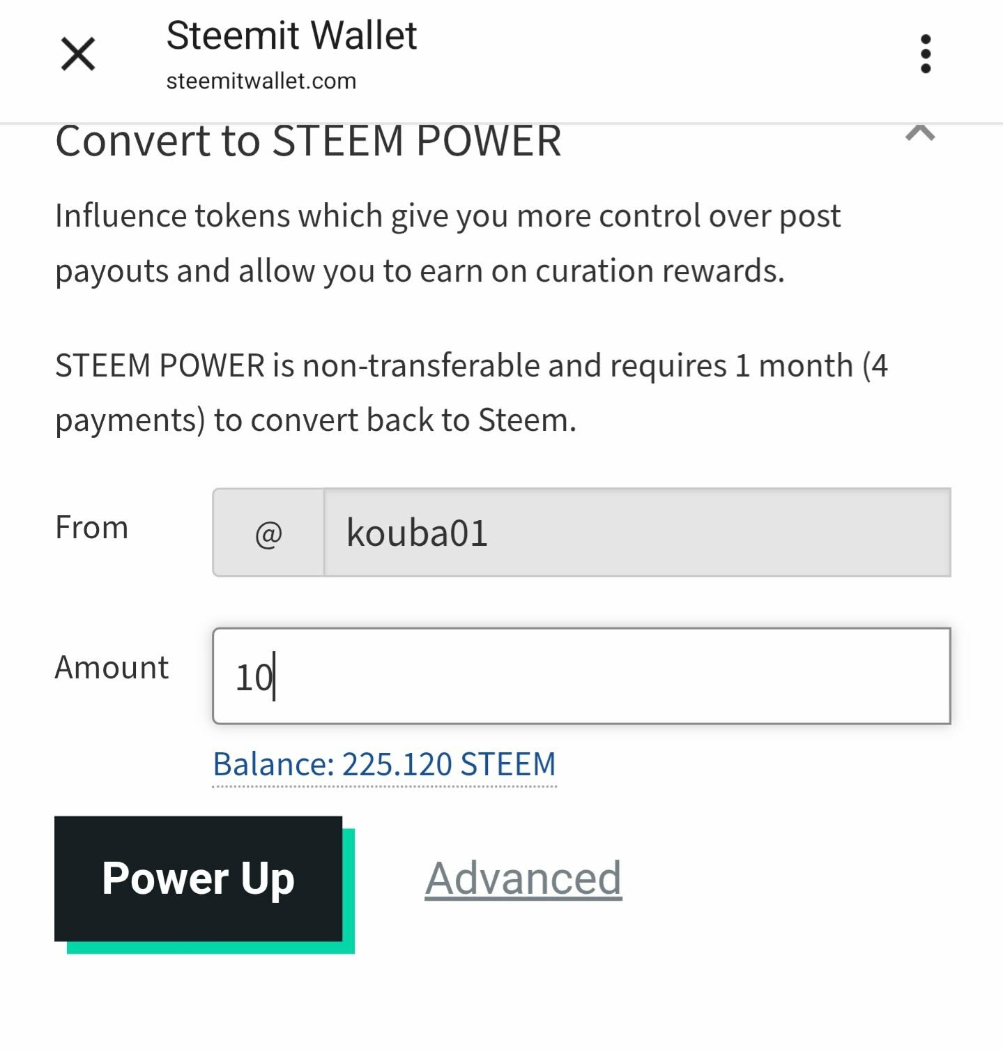 The process was simple. I opened my Steemit Wallet, selected my STEEM balance, and chose the option to convert STEEM into STEEM POWER.