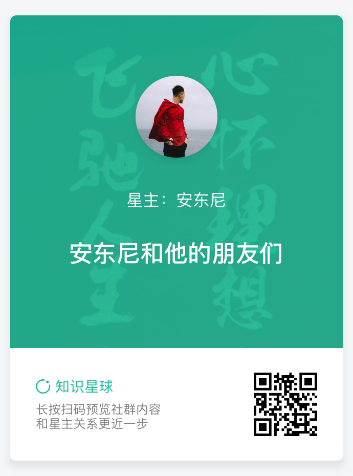 为了使优质的内容能够沉淀下来,我专门建了个同名知识星球,扫描下方二维码,加入安东尼和他的朋友们星球。