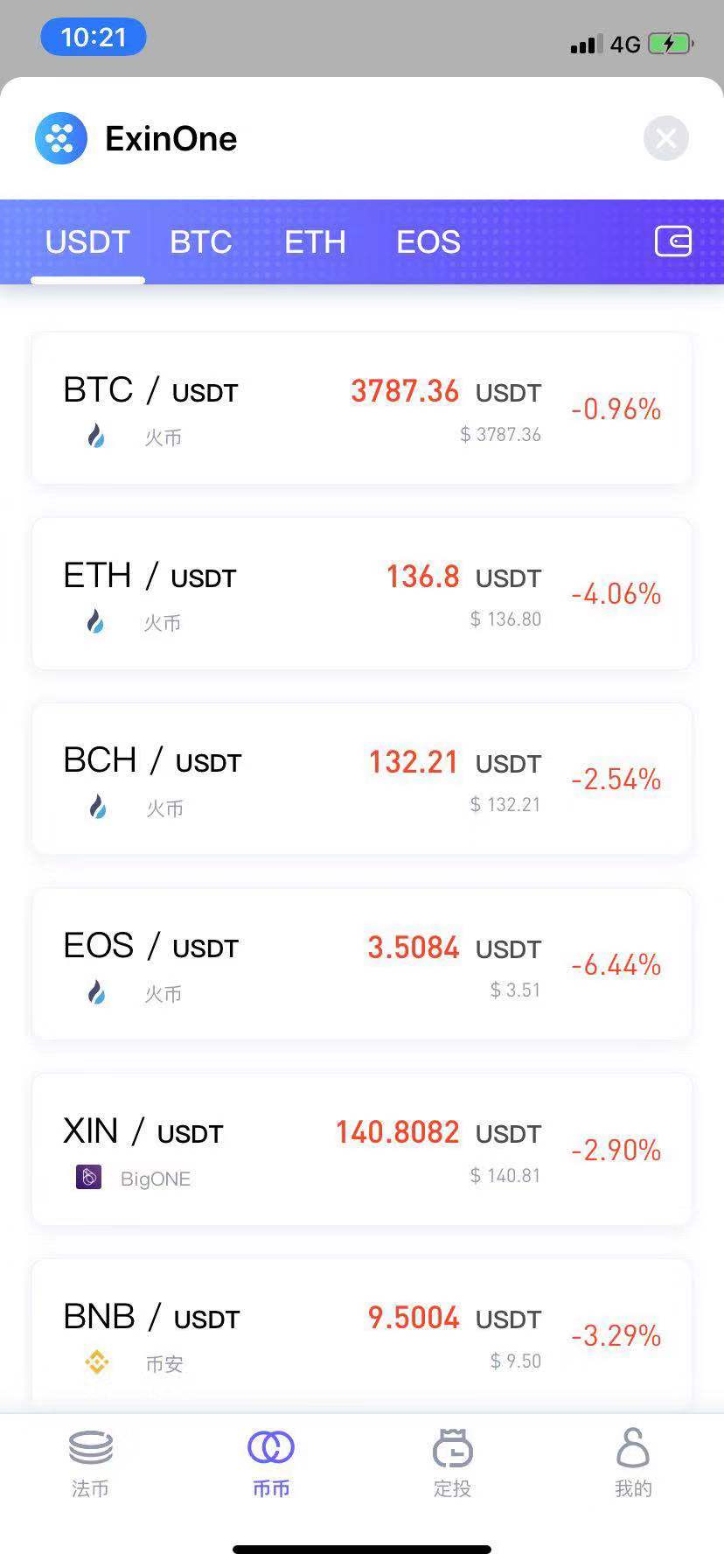 虽然是讲定投,但是这里也想提一下ExinOne 的币币交易功能,当你觉得近期的上涨不符合正常规律时,可以直接通过币币交易换成USDT这样的稳定币或者其他数字货币。