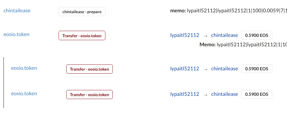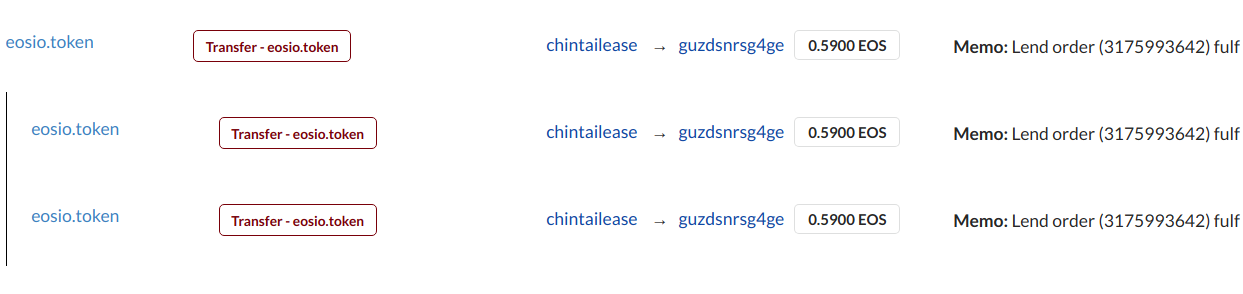 可以看見被觸發是因為另一名使用者提交了BORROW的交易,一樣涵蓋了prepare, eos transfer以及activate三個步驟。