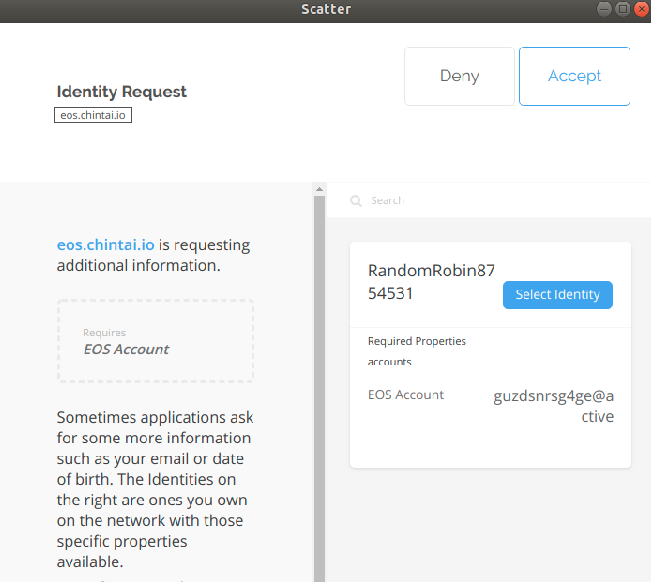 - 在跳出的scatter視窗中選擇要使用的identity,然後選Accept