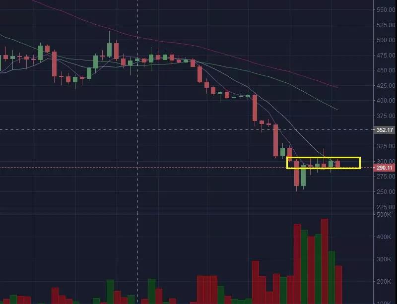 屋漏偏逢连夜雨,市场越是低迷坏消息越多。以太坊协议一直没有什么重大进展,其包含Casper还有POS验证机制在内的改革方案没有落实,业内诸多诟病,导致投资者的持币信心日益不足。尽管V神连发数条推特解释,也依然难挽救颓势,从技术上看,日线横盘已经超过4天,若不能快速突破320刀一线,估计又要回到250附近震荡寻底了。